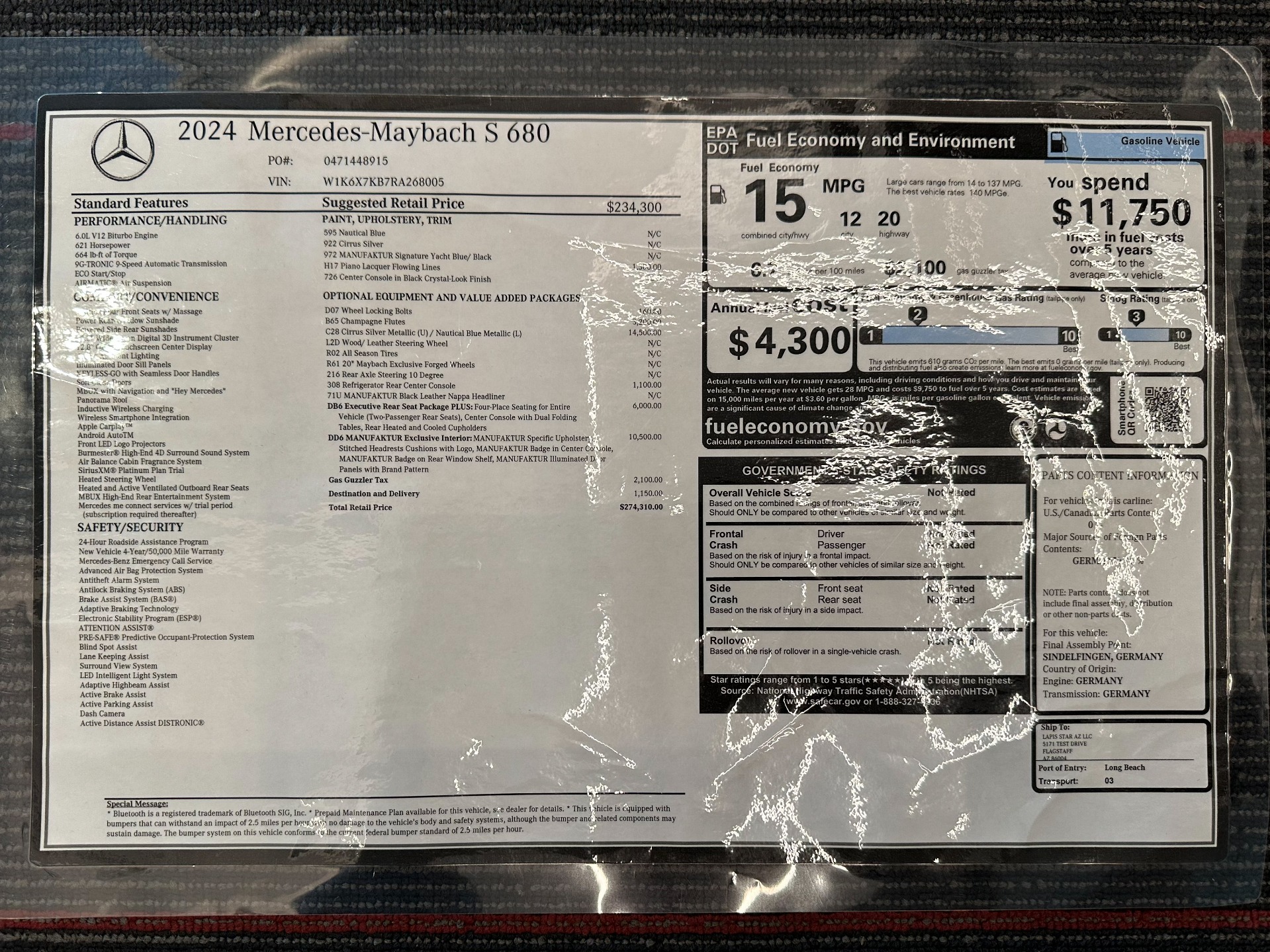 2024 Mercedes-Benz Mercedes-Maybach S 680 4MATIC -AMG V12, Factory Two-Tone, Executive Rear Seats (Cirrus Silver/Nautical Blue Metallic) For Sale