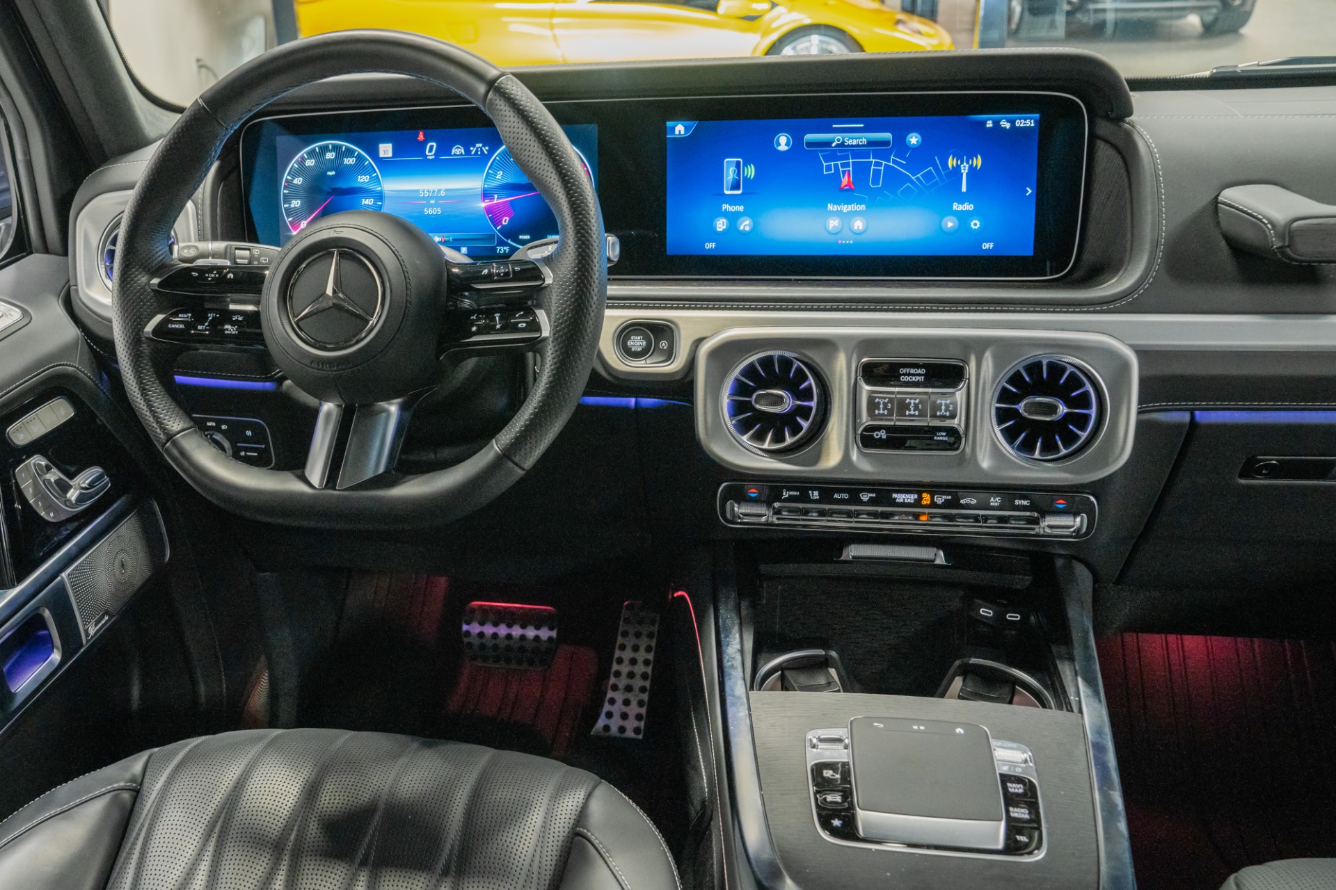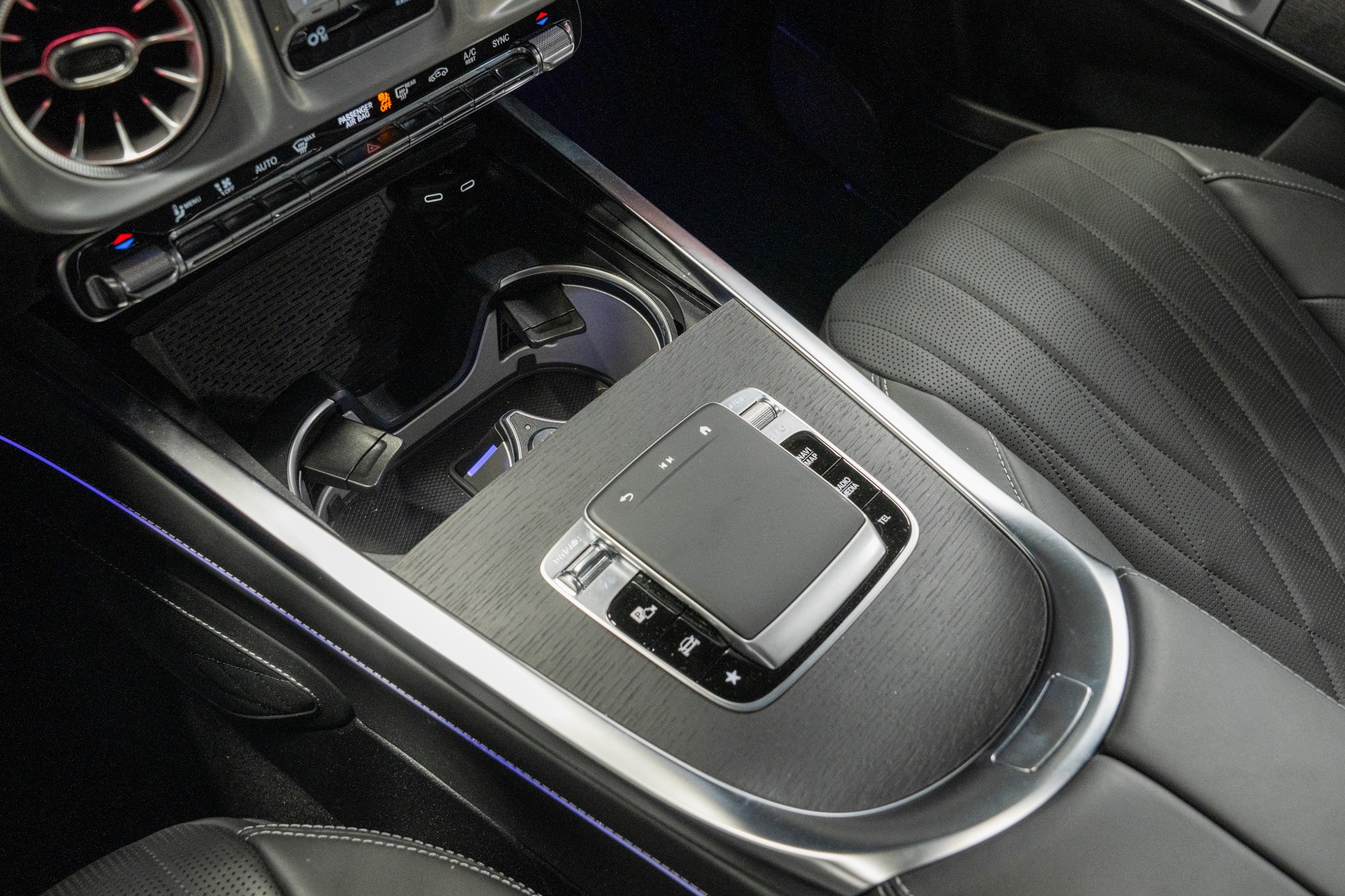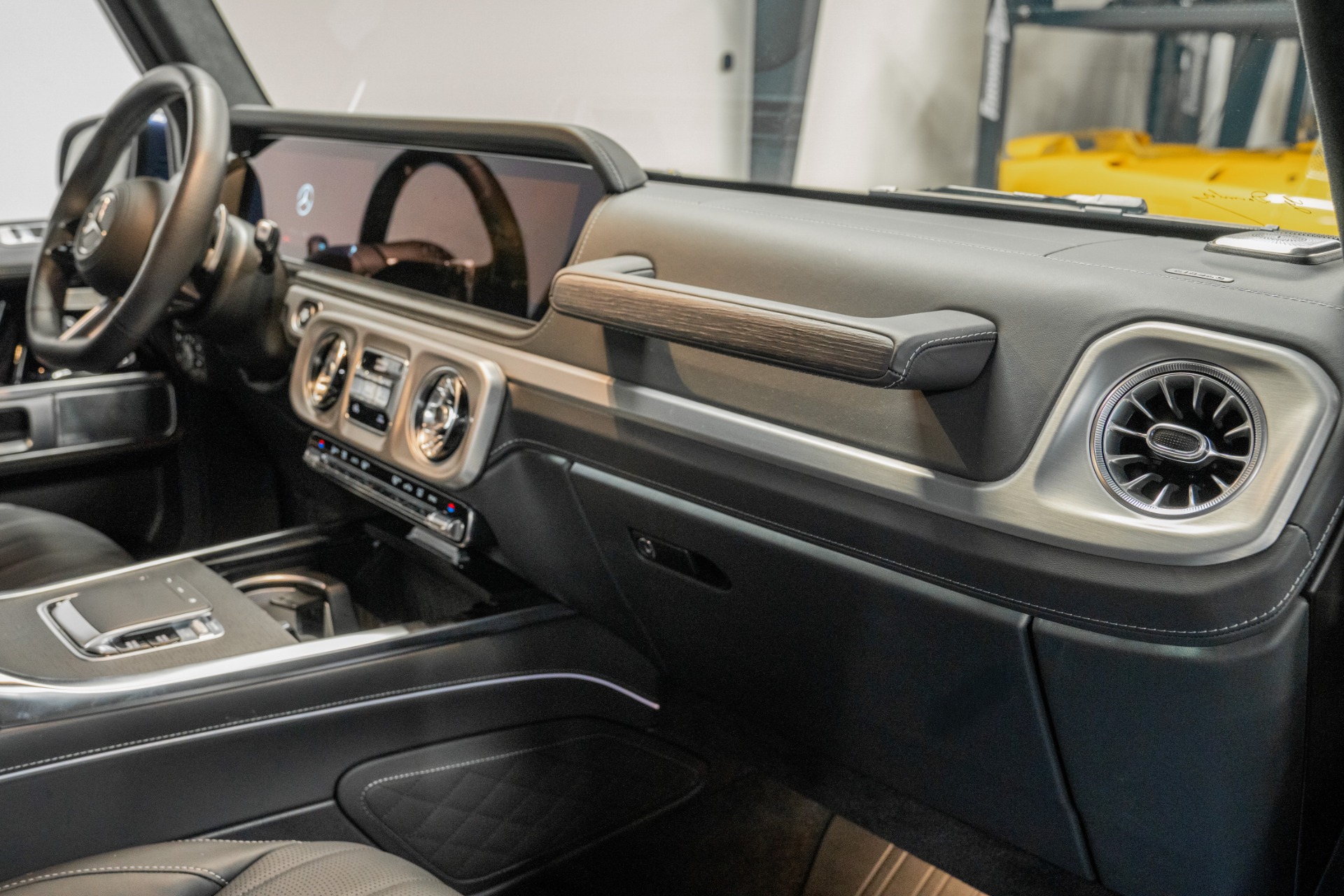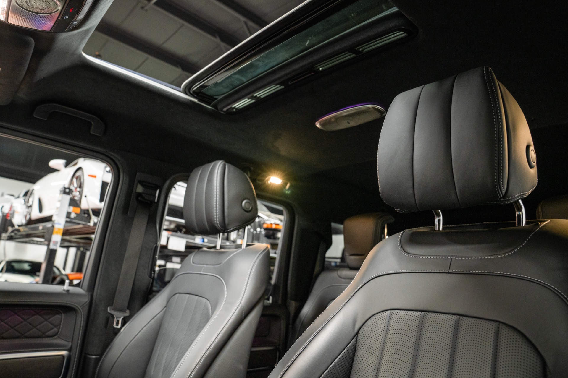 The MANUFAKTUR appointments elevate luxury to new heights: exclusive Nappa leather with diamond stitching, natural grain grey oak trim, and black microfiber headliner create an atmosphere of refined opulence. The AMG Line package adds sporting DNA with performance-tuned exhaust, sport steering wheel, and distinctive exterior styling. Indulgent comfort features include active multicontour ventilated seats with massage functionality and rapid heating, while the panoramic sunroof enhances the cabin's airy ambiance.