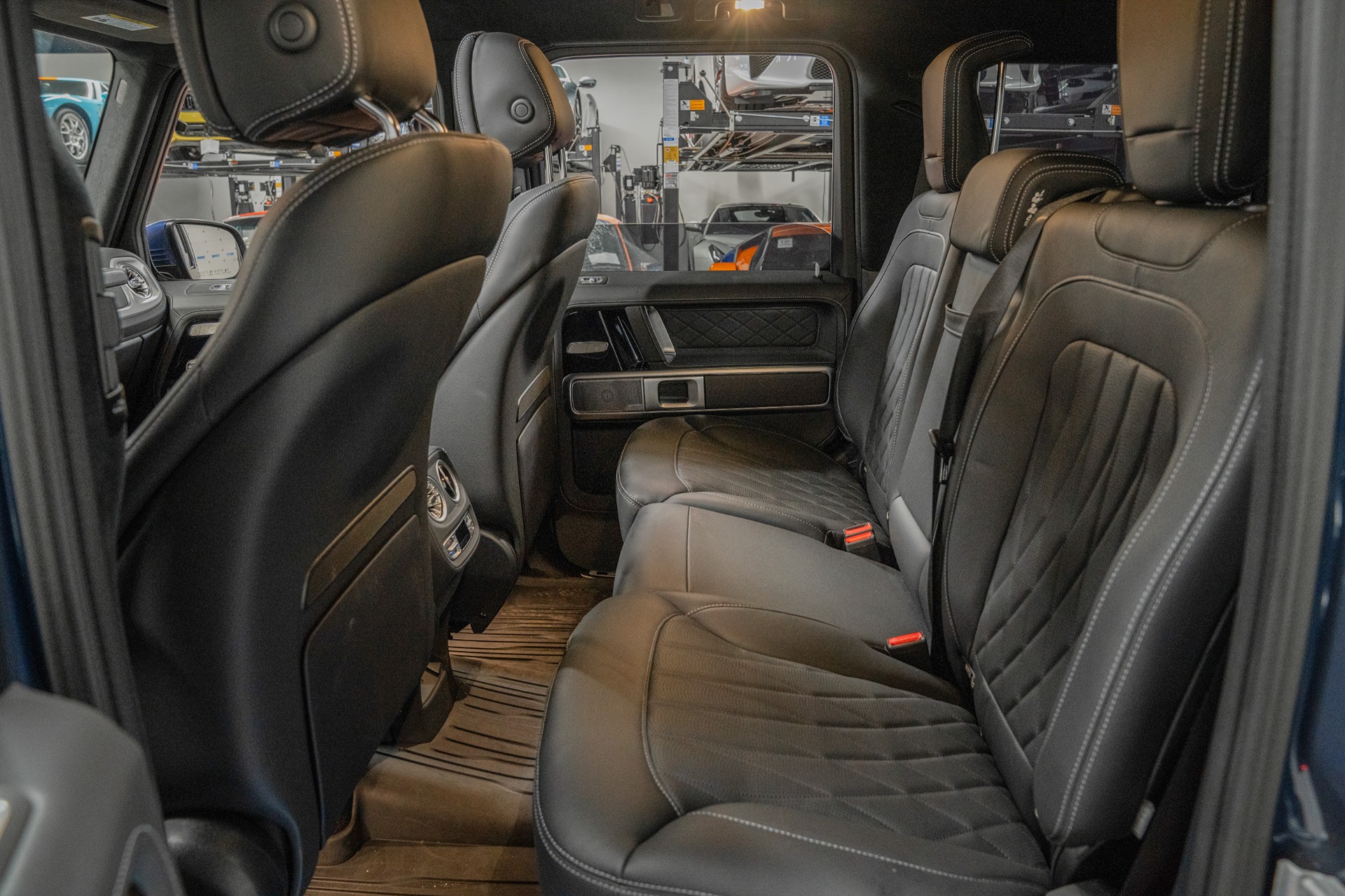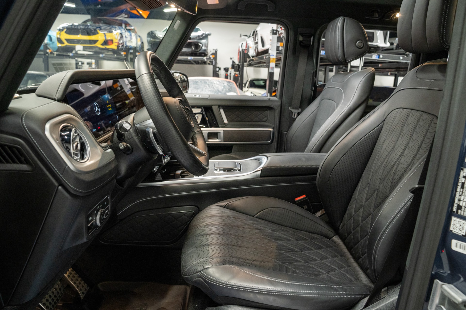 The heart of this beast delivers exhilarating performance through its 3.0-liter turbocharged inline-six engine, generating 443 horsepower and 413 lb-ft of torque, seamlessly managed by a refined 9-speed automatic transmission. This particular G550 commands attention with $15,000 worth of stunning 22-inch Vossen HF-7 hybrid forged wheels in gloss black, complemented by Michelin Pilot Sport all-season rubber.