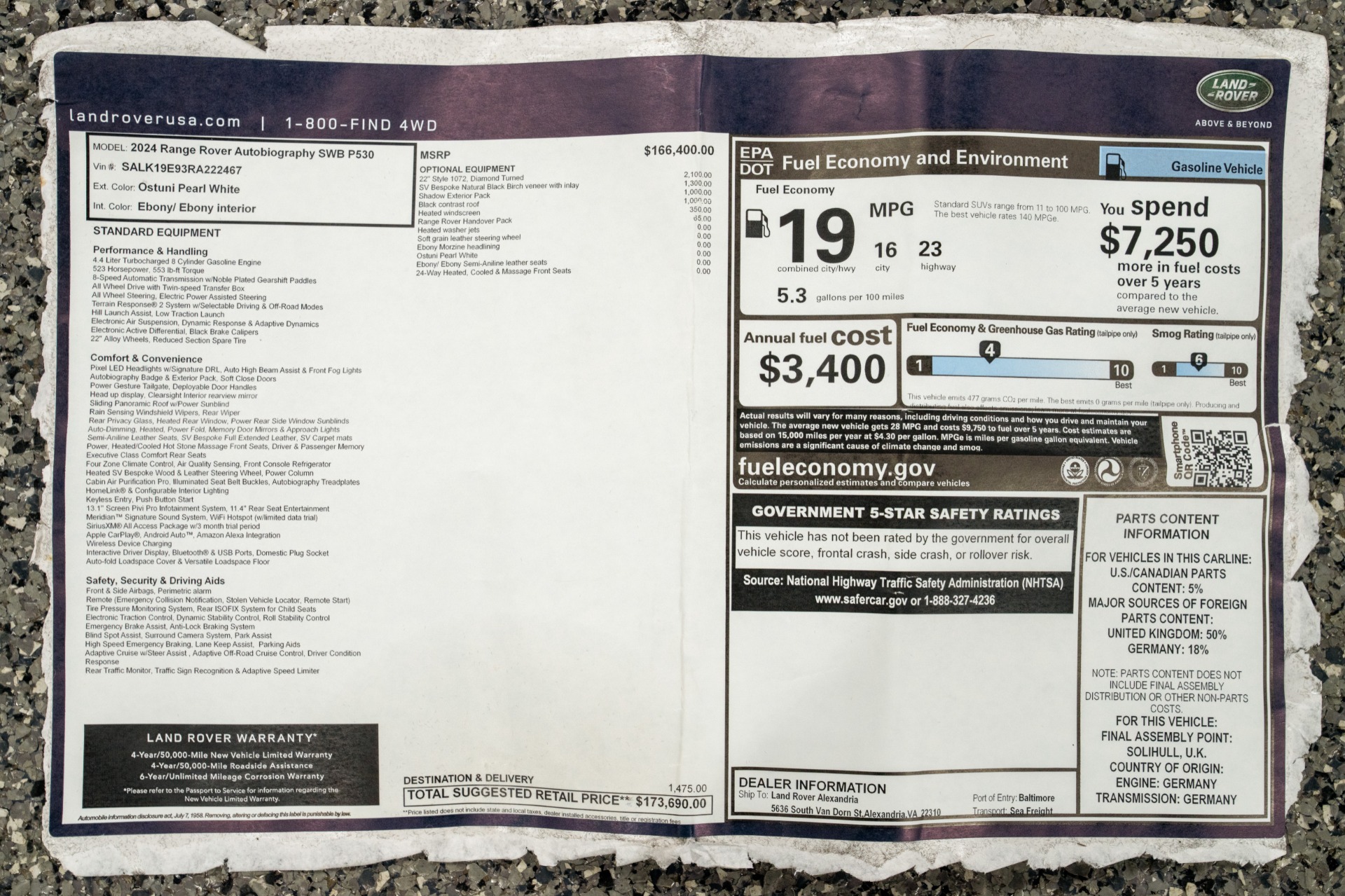 2024 Land Rover Range Rover P530 Autobiography -Executive Rear Seats, Rear Seat Entertainment (Ostuni Pearl White Metallic) For Sale