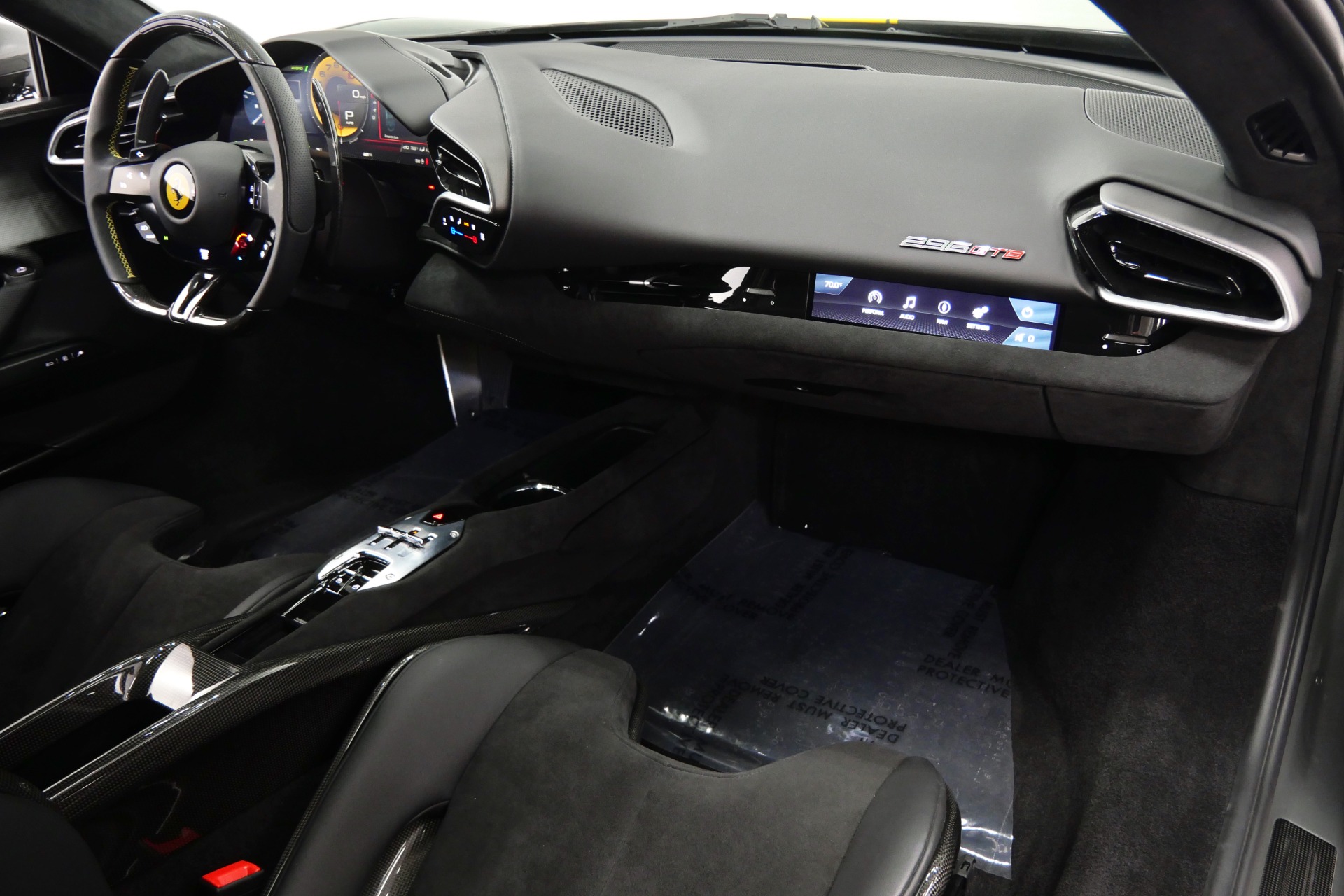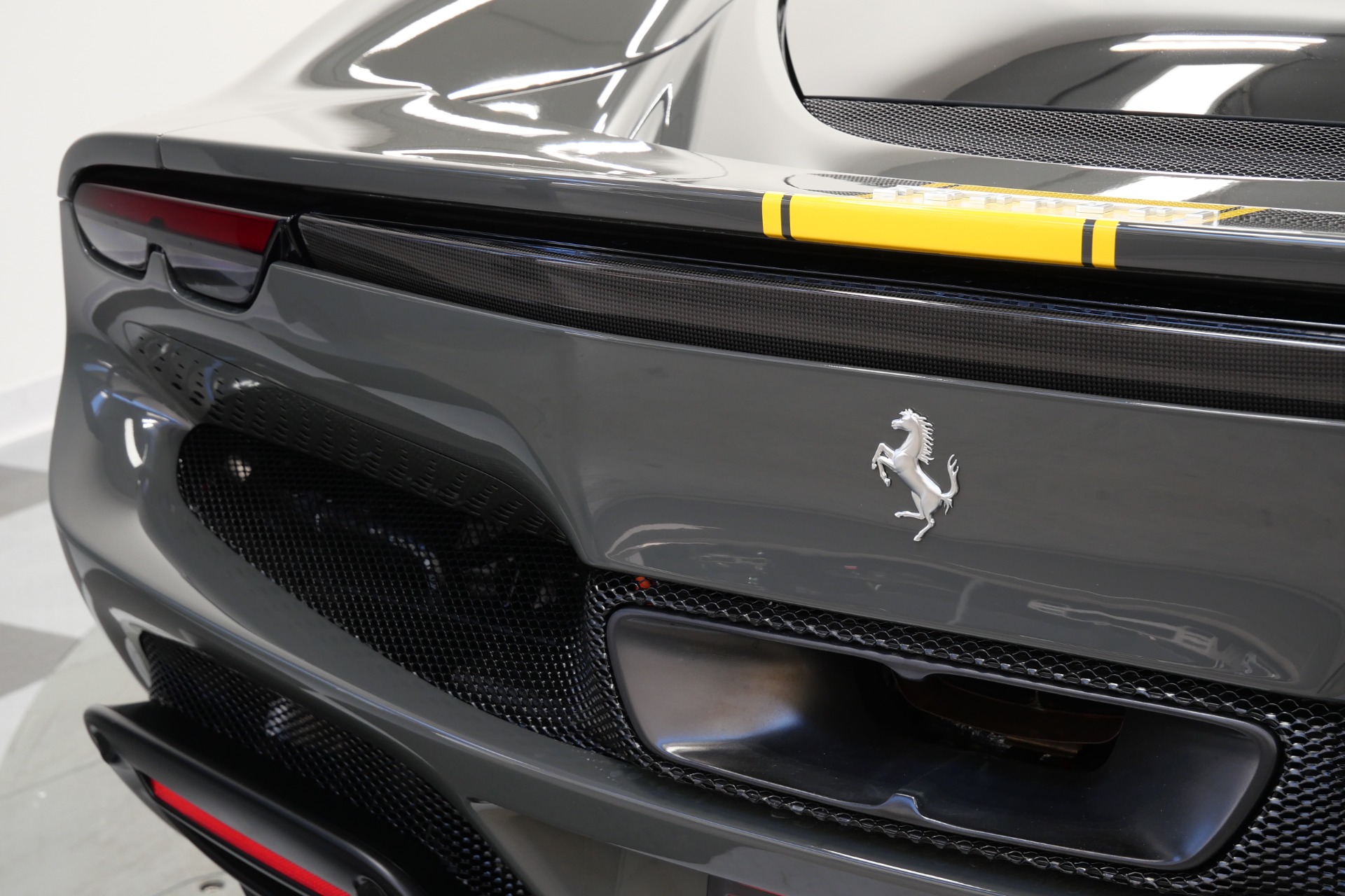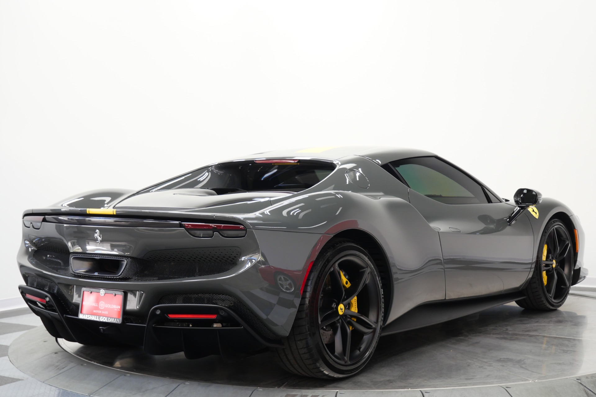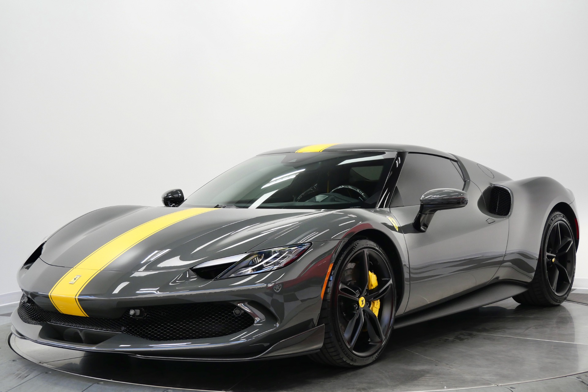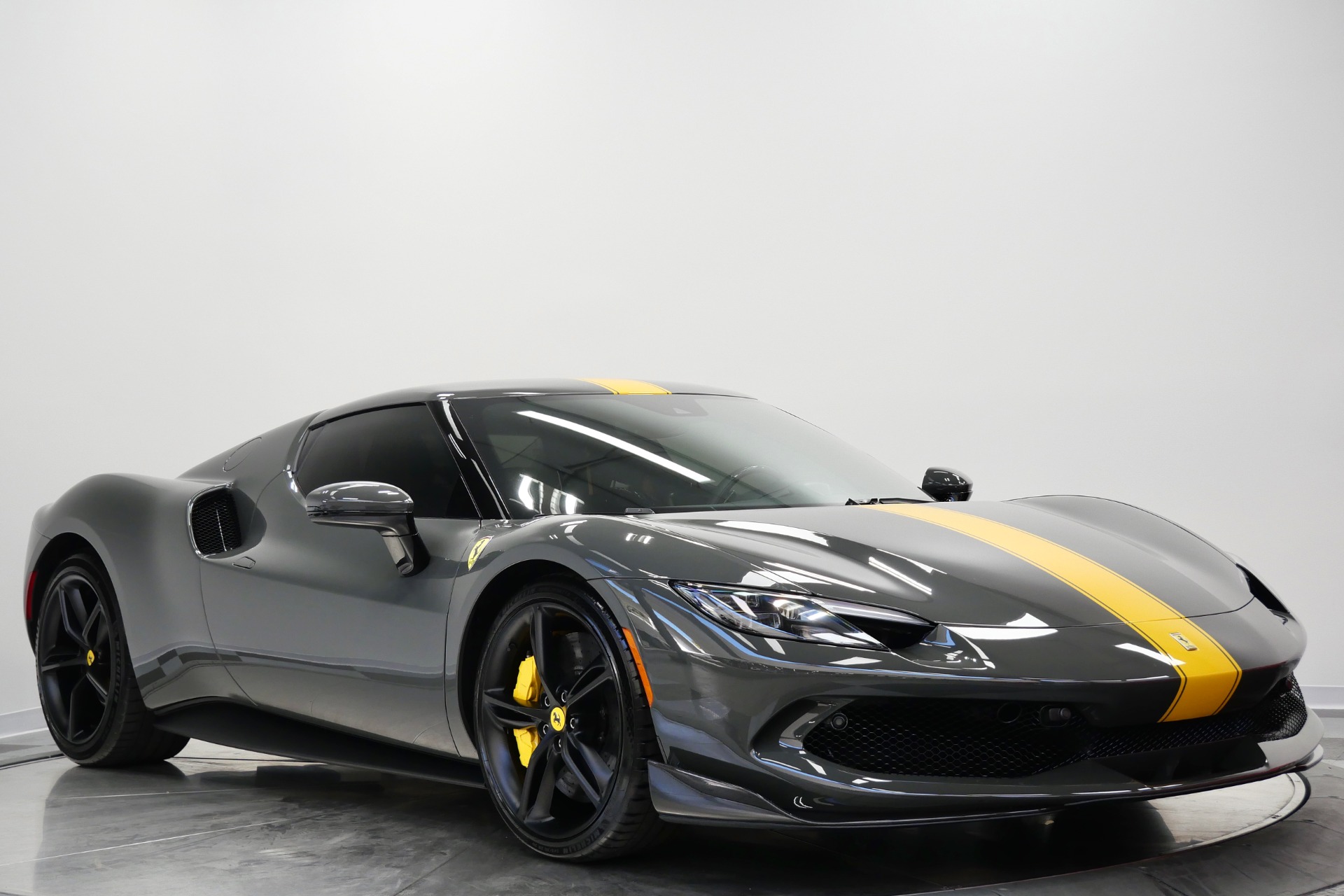 2023 Ferrari 296 GTB -Livery stripes, Carbon Fiber Racing Seats, Yellow Stitching (Grigio Scuro) For Sale