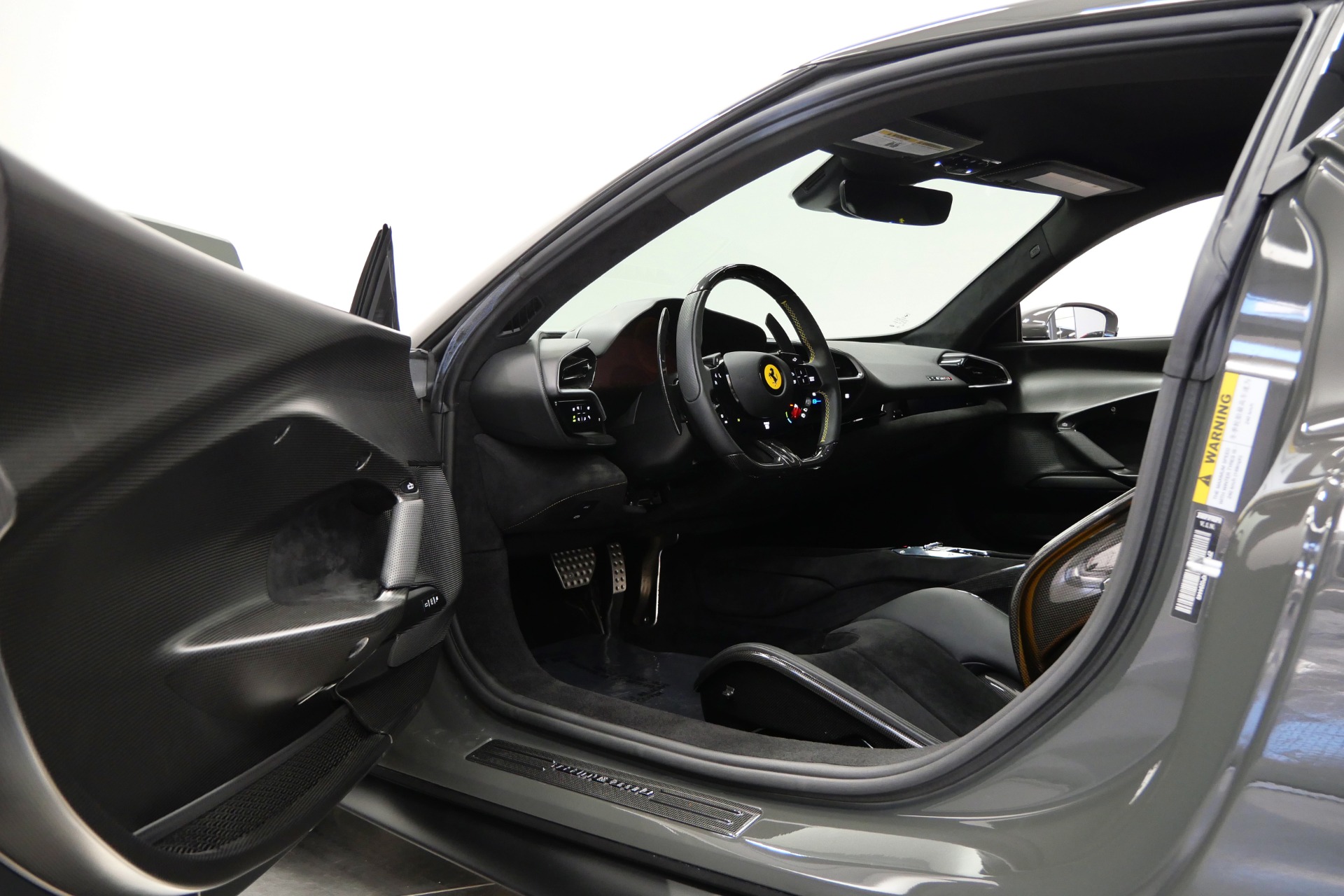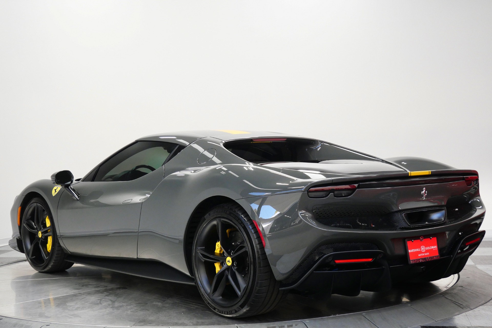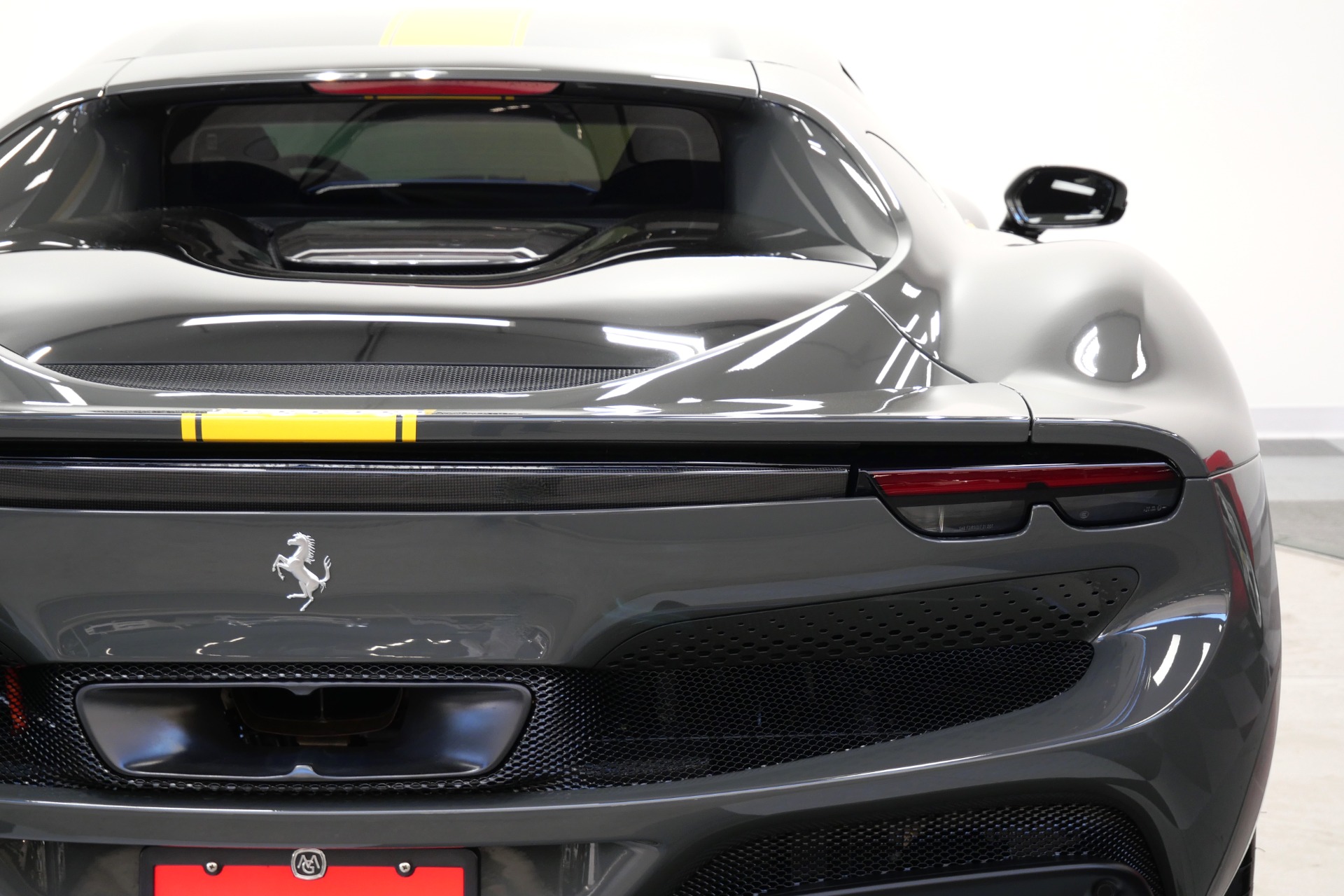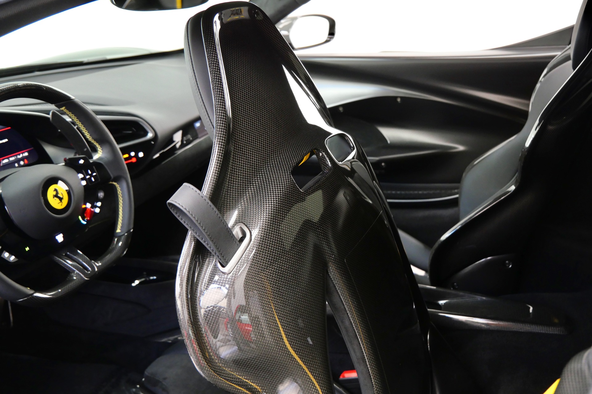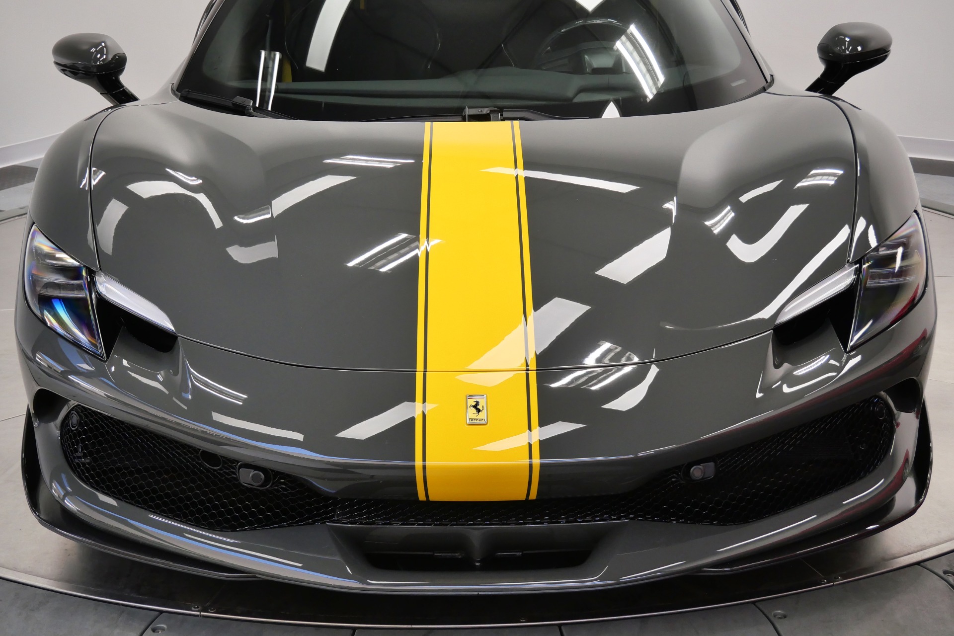 2023 Ferrari 296 GTB -Livery stripes, Carbon Fiber Racing Seats, Yellow Stitching (Grigio Scuro) For Sale