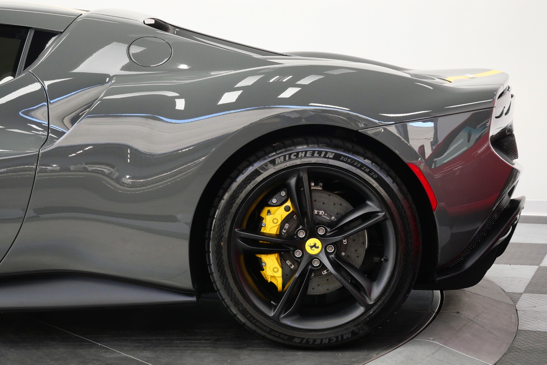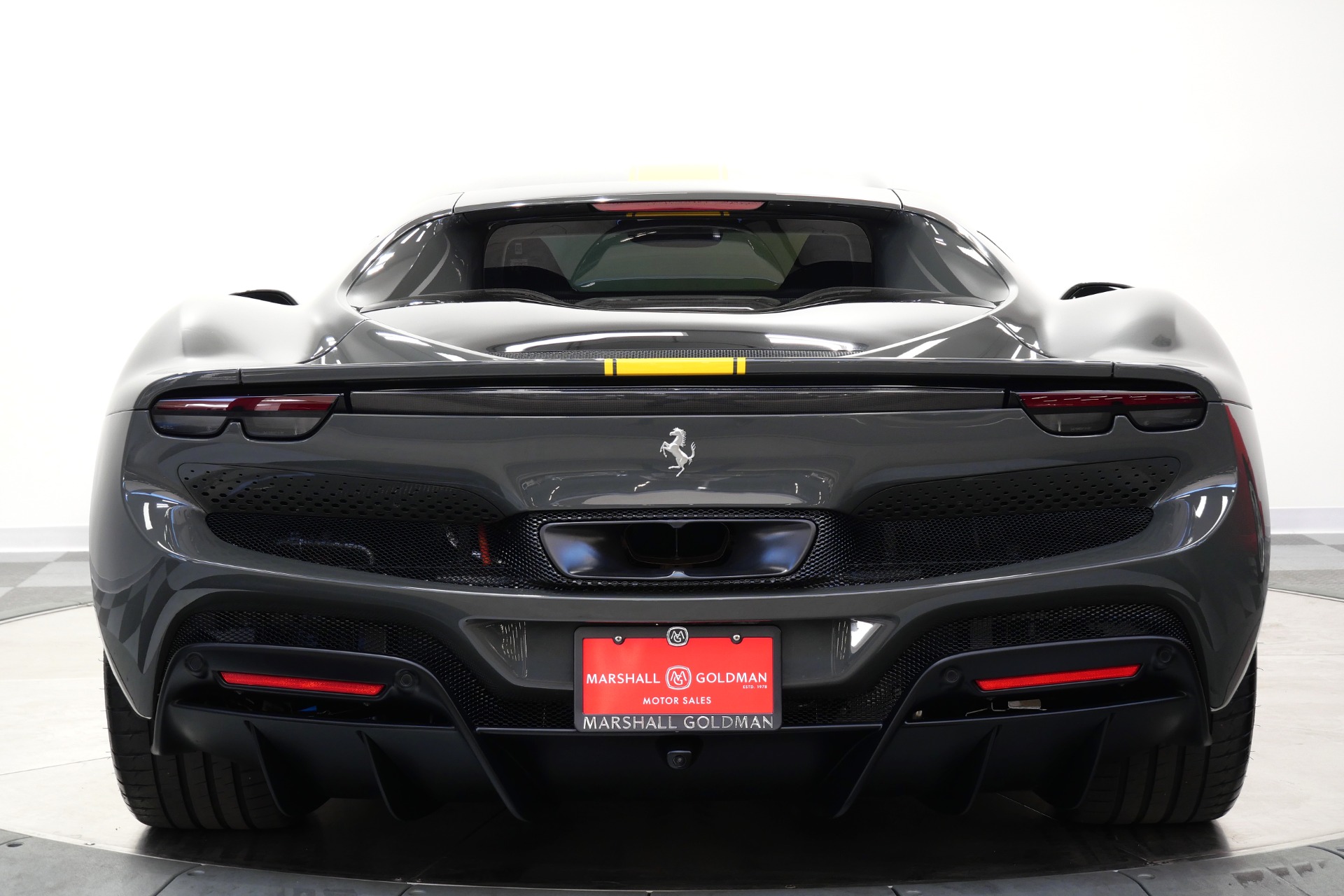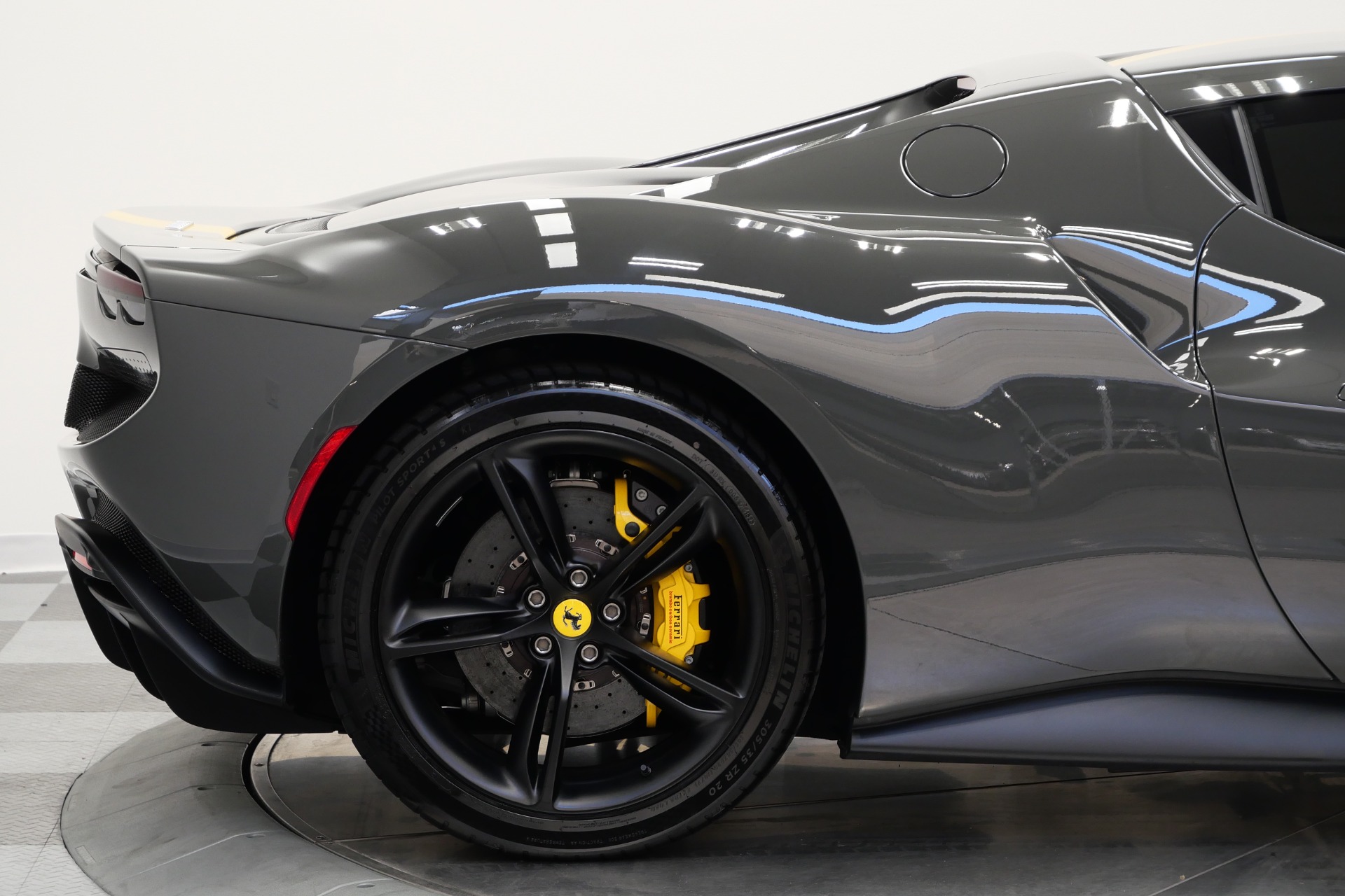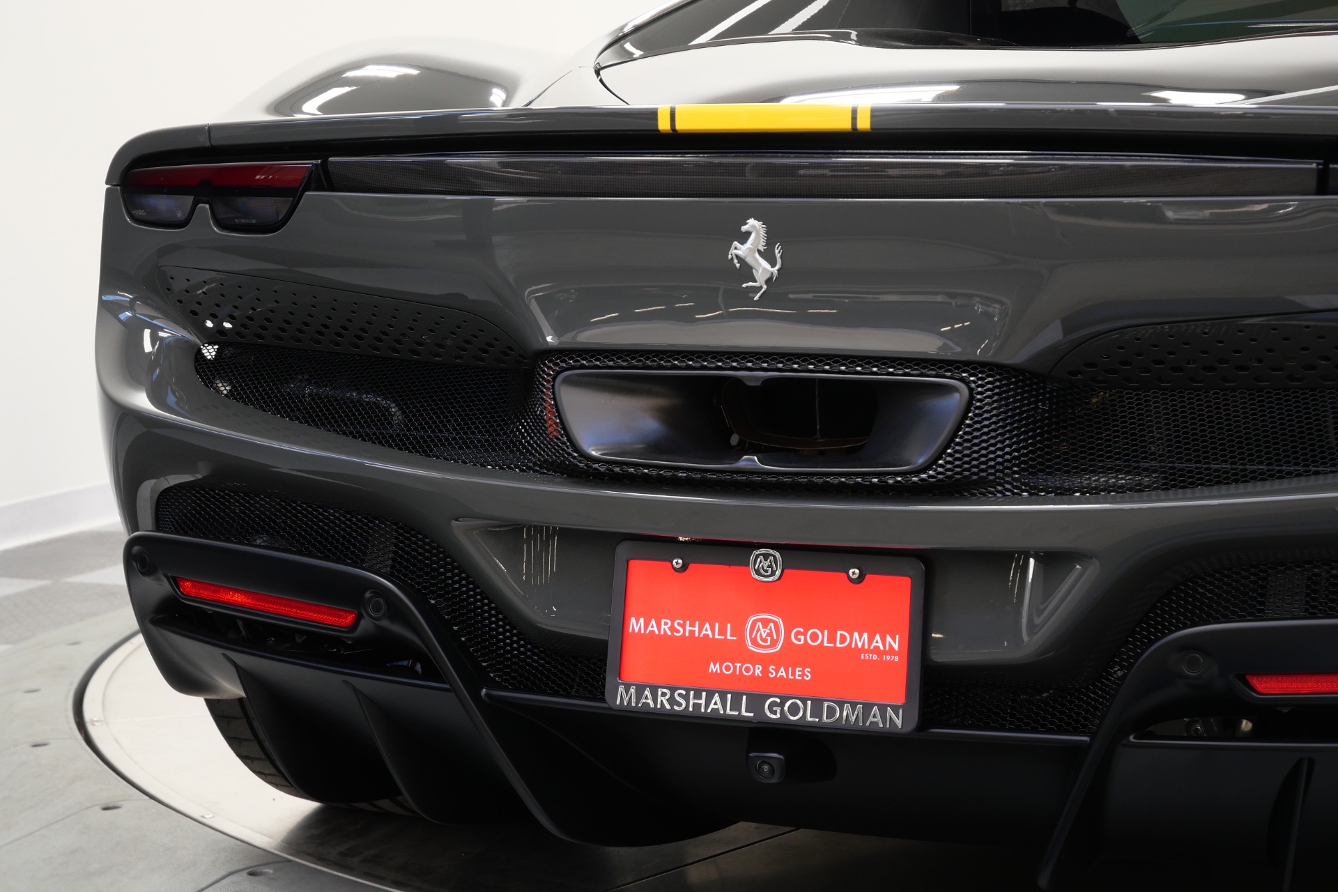 2023 Ferrari 296 GTB -Livery stripes, Carbon Fiber Racing Seats, Yellow Stitching (Grigio Scuro) For Sale