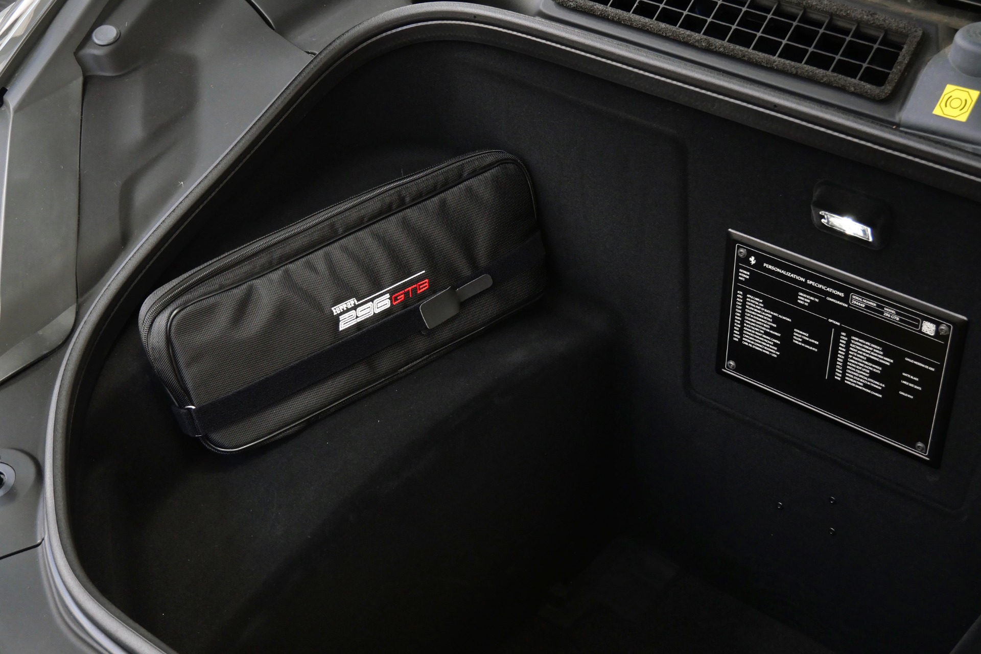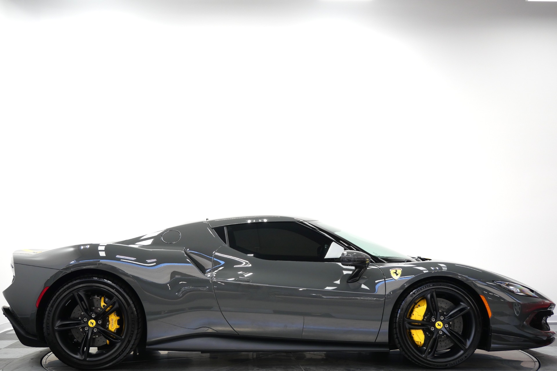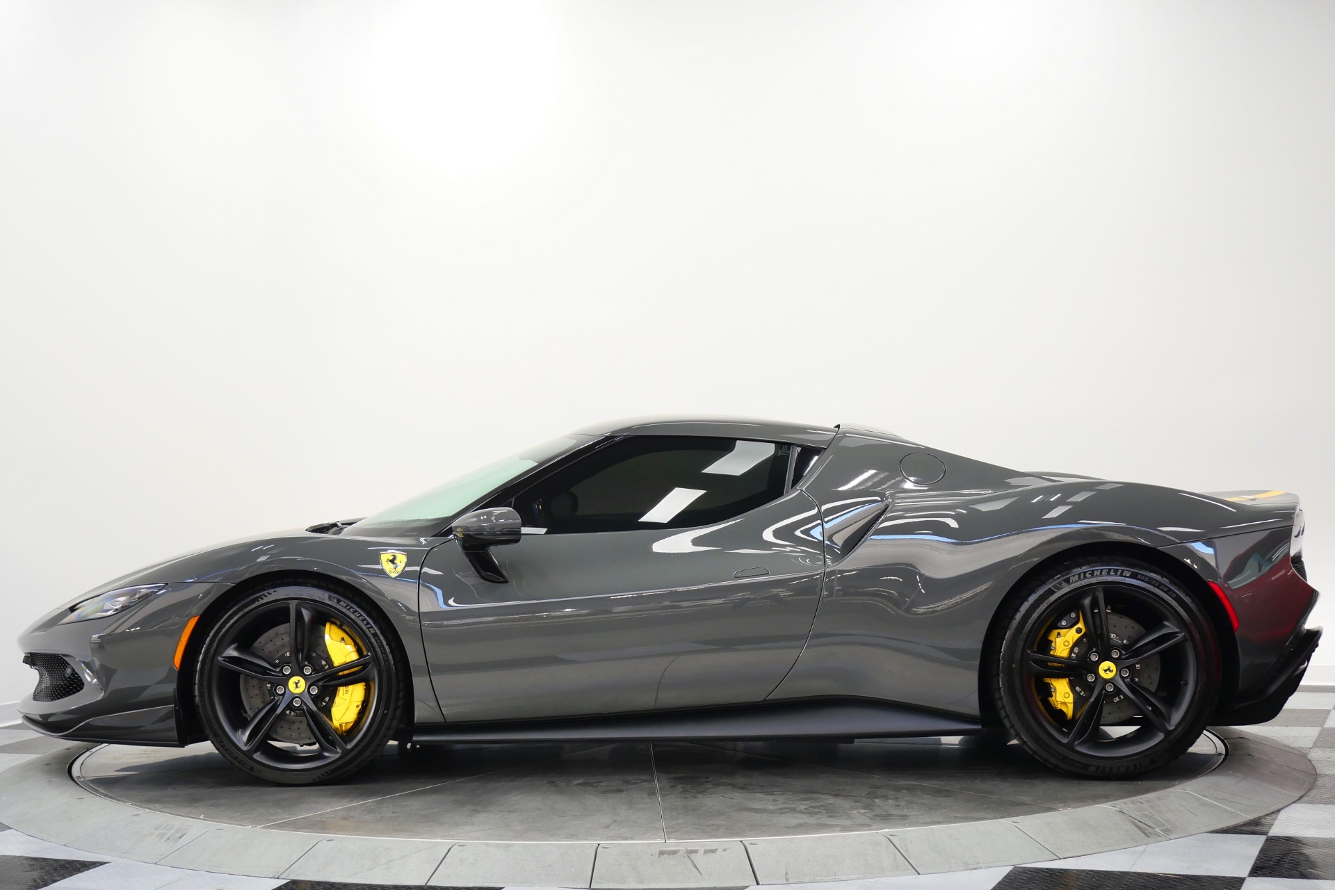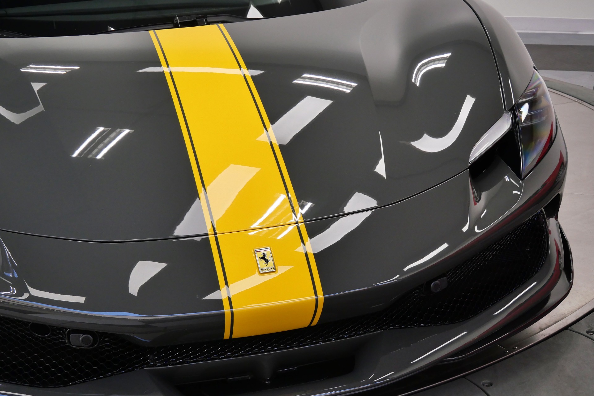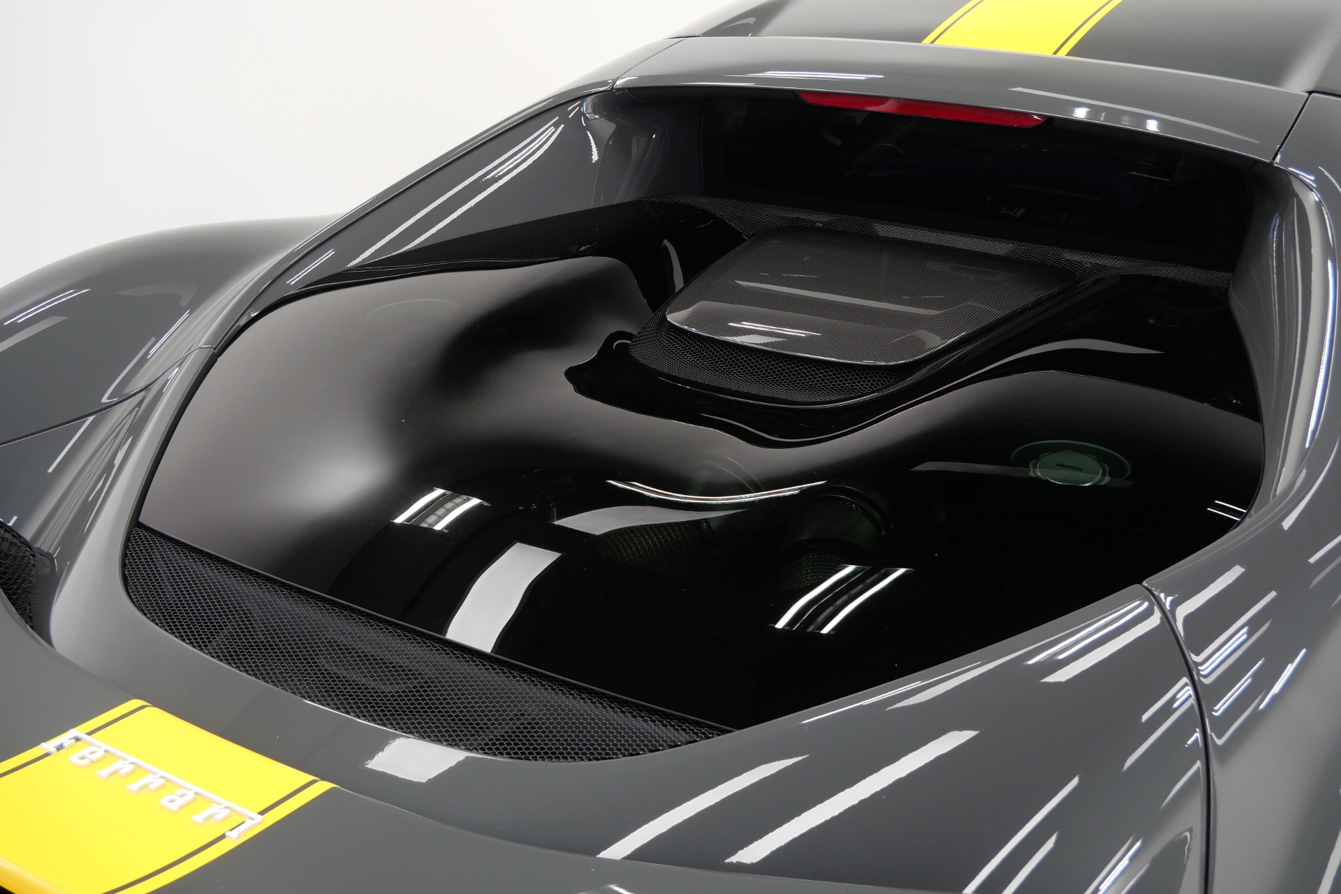 2023 Ferrari 296 GTB -Livery stripes, Carbon Fiber Racing Seats, Yellow Stitching (Grigio Scuro) For Sale