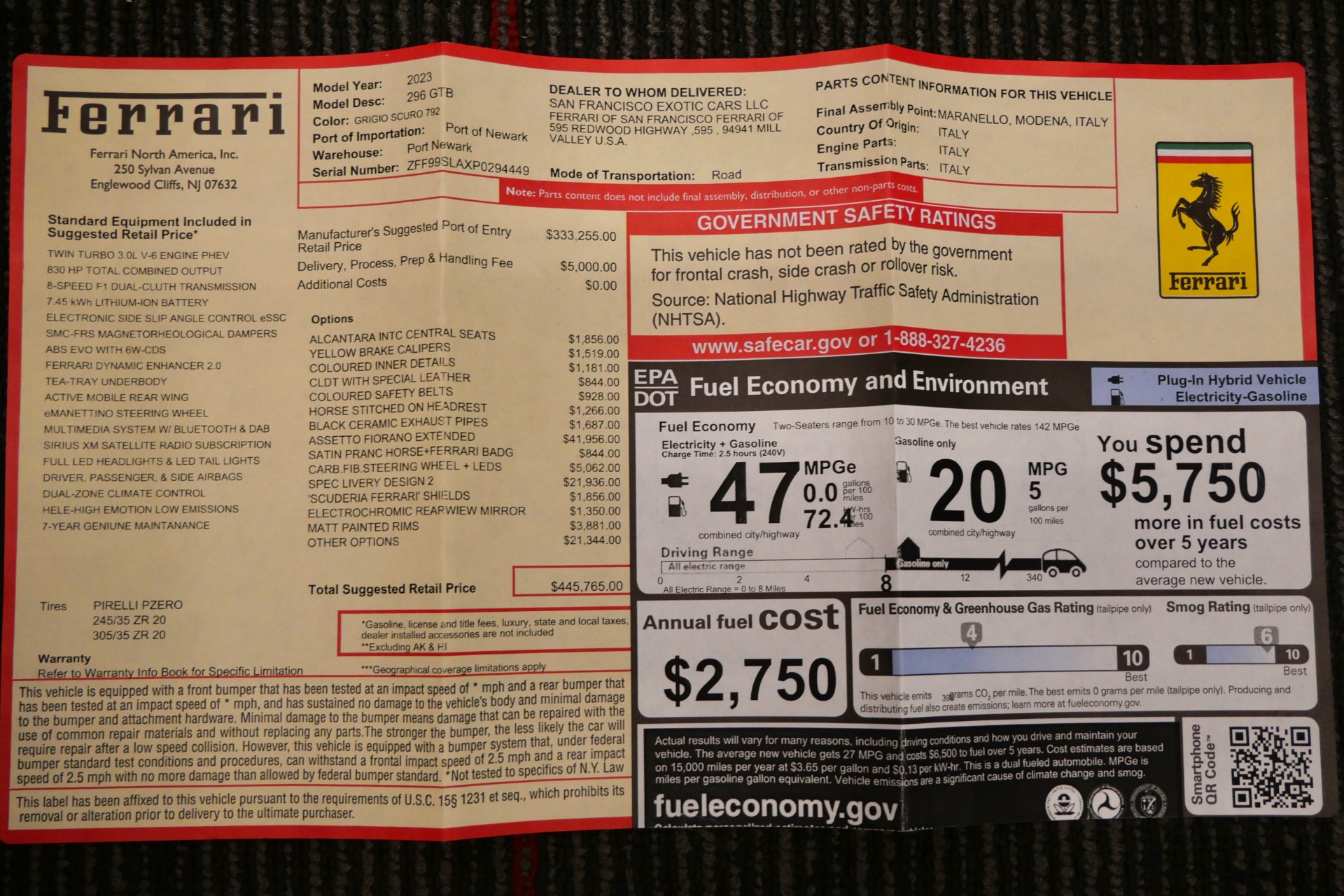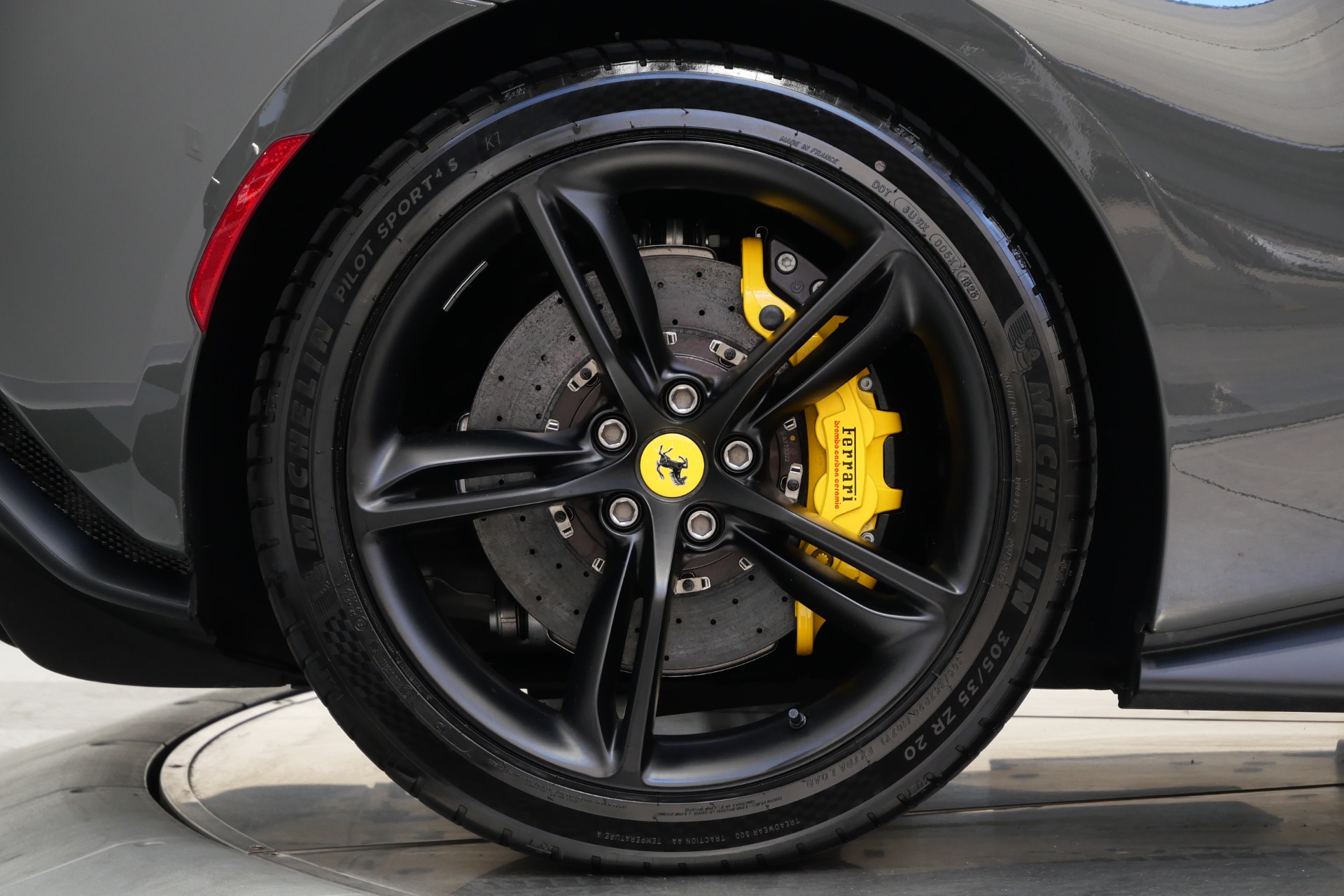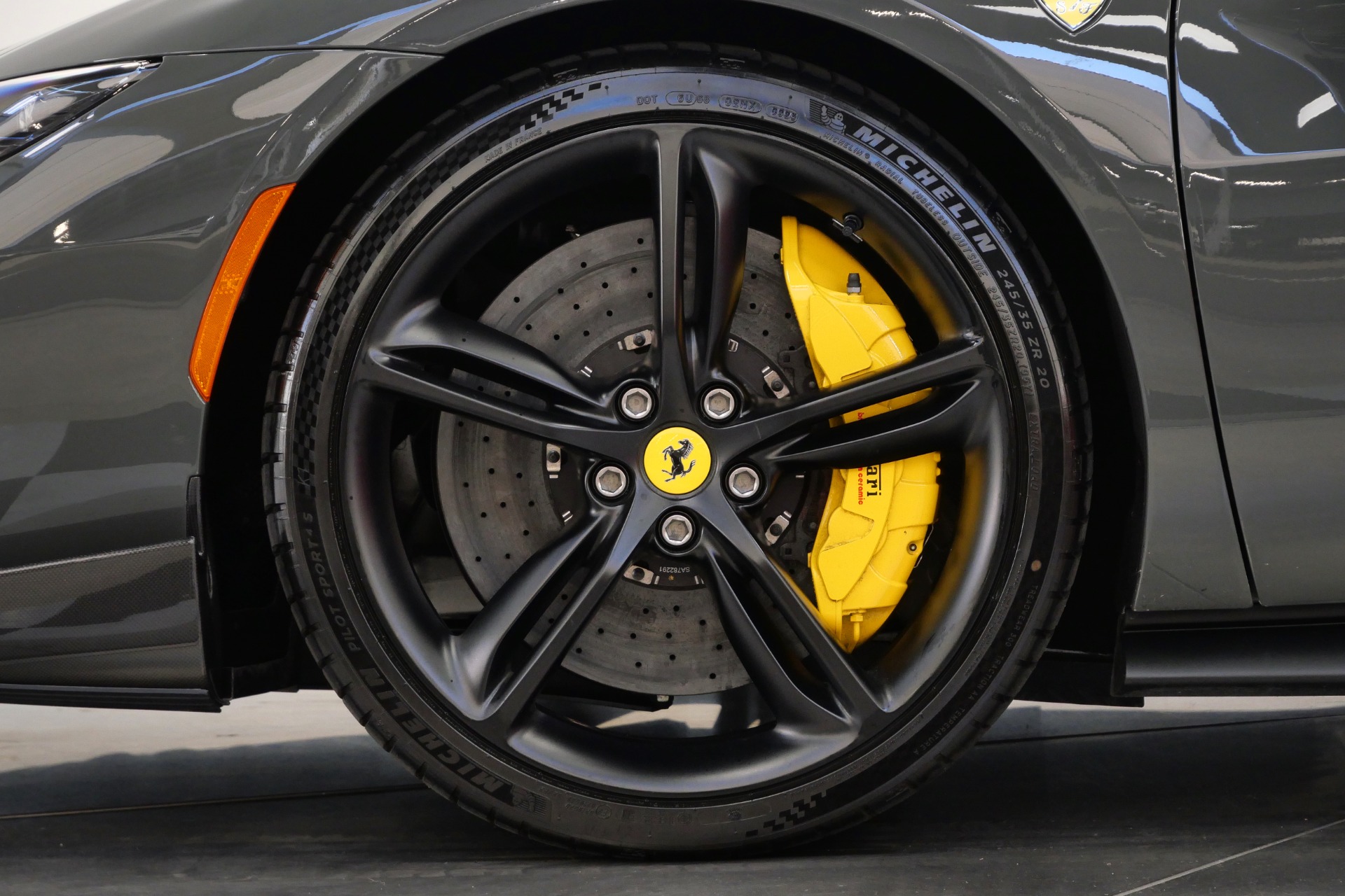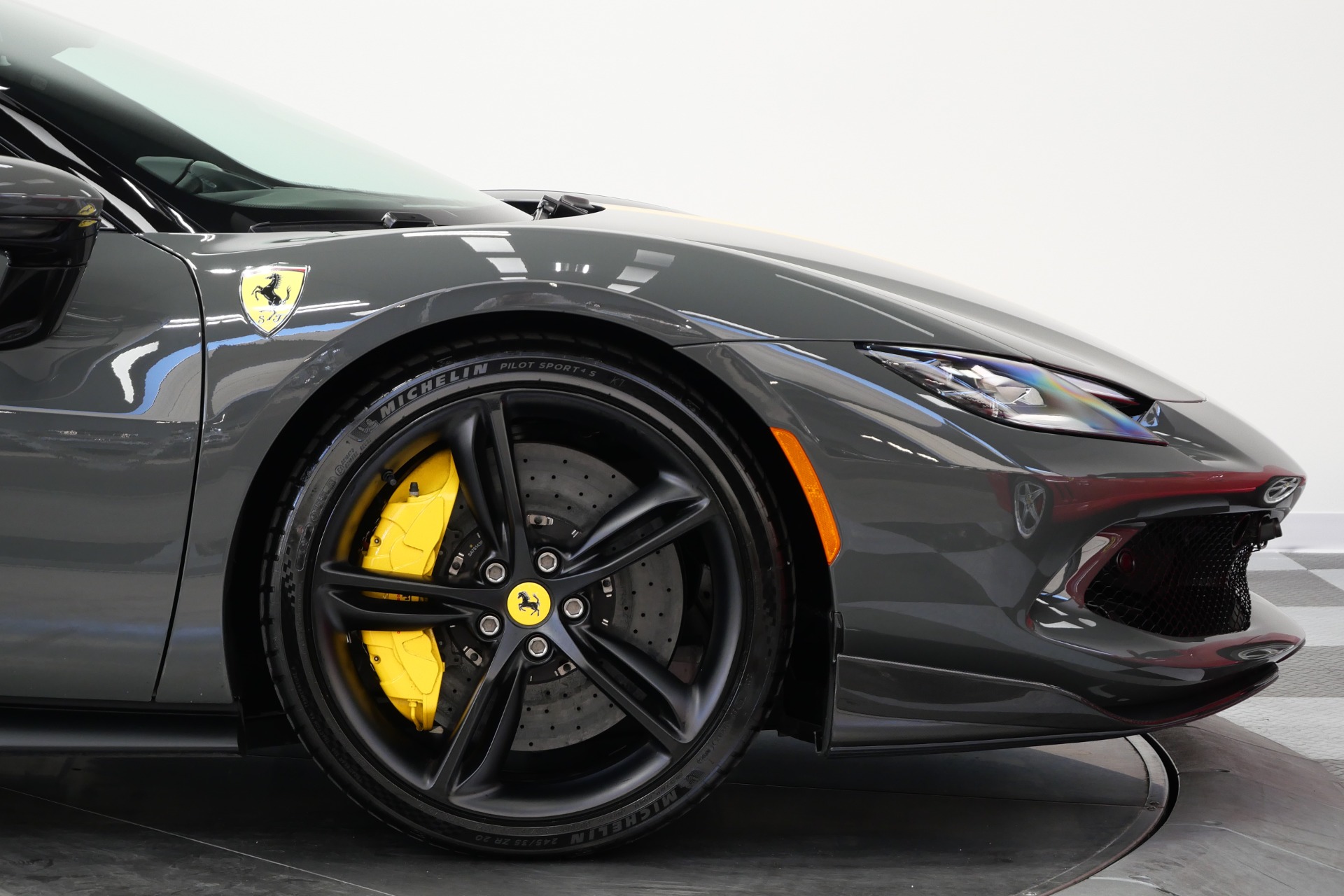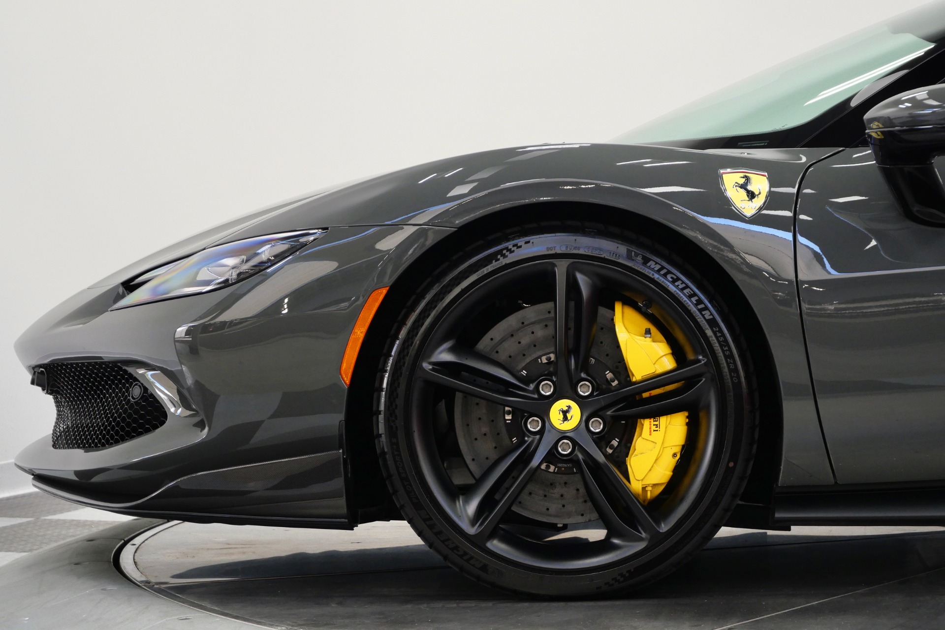 2023 Ferrari 296 GTB -Livery stripes, Carbon Fiber Racing Seats, Yellow Stitching (Grigio Scuro) For Sale