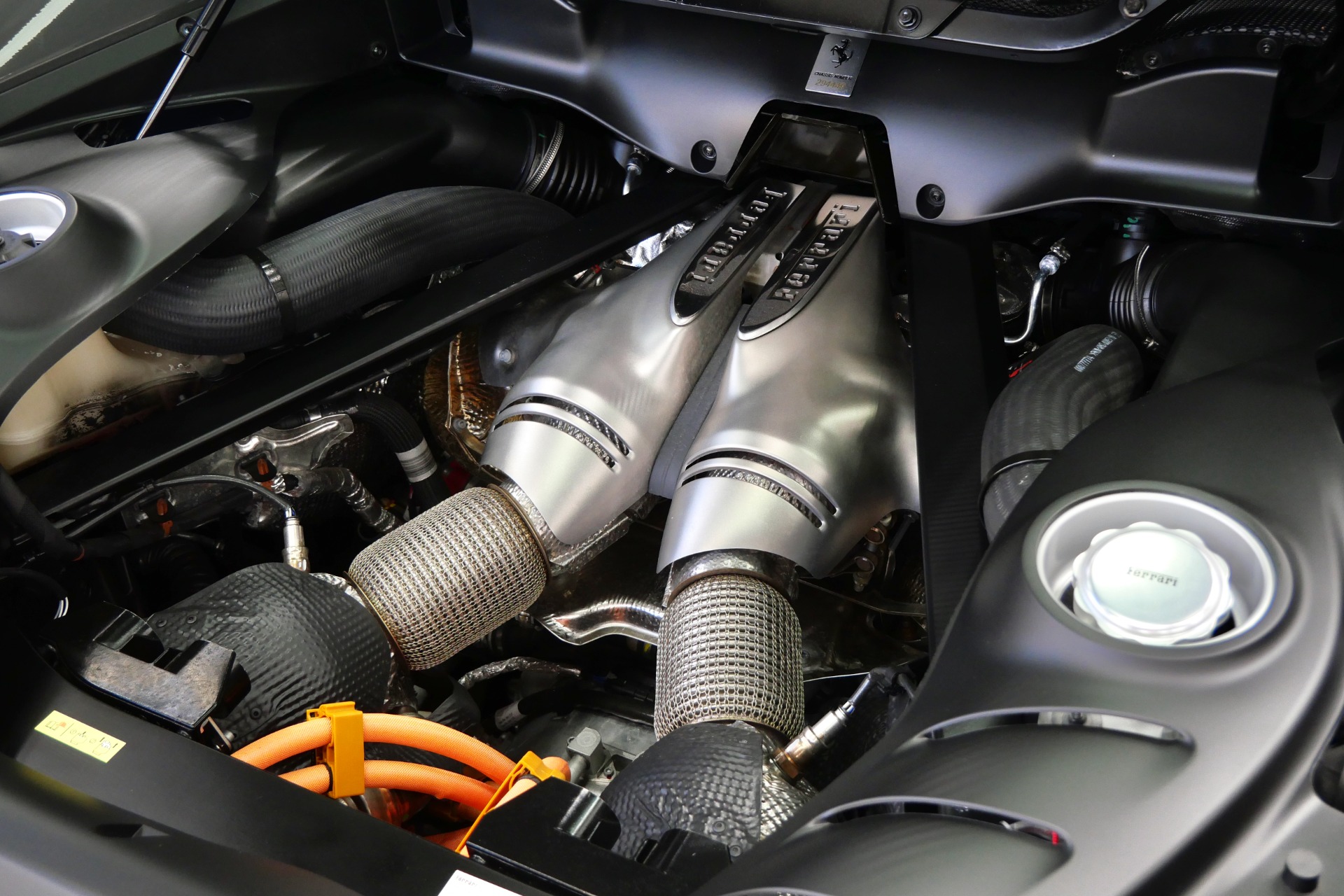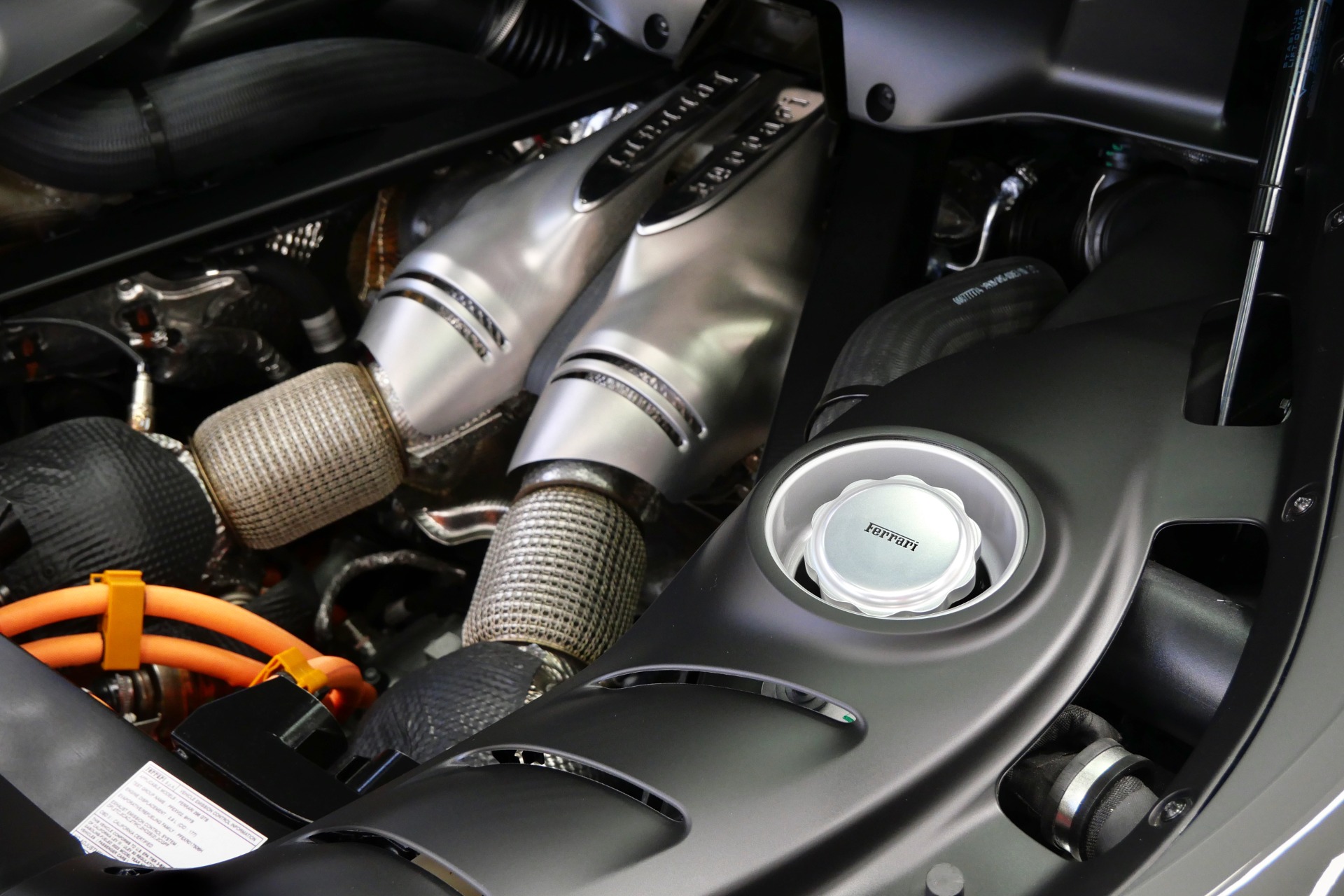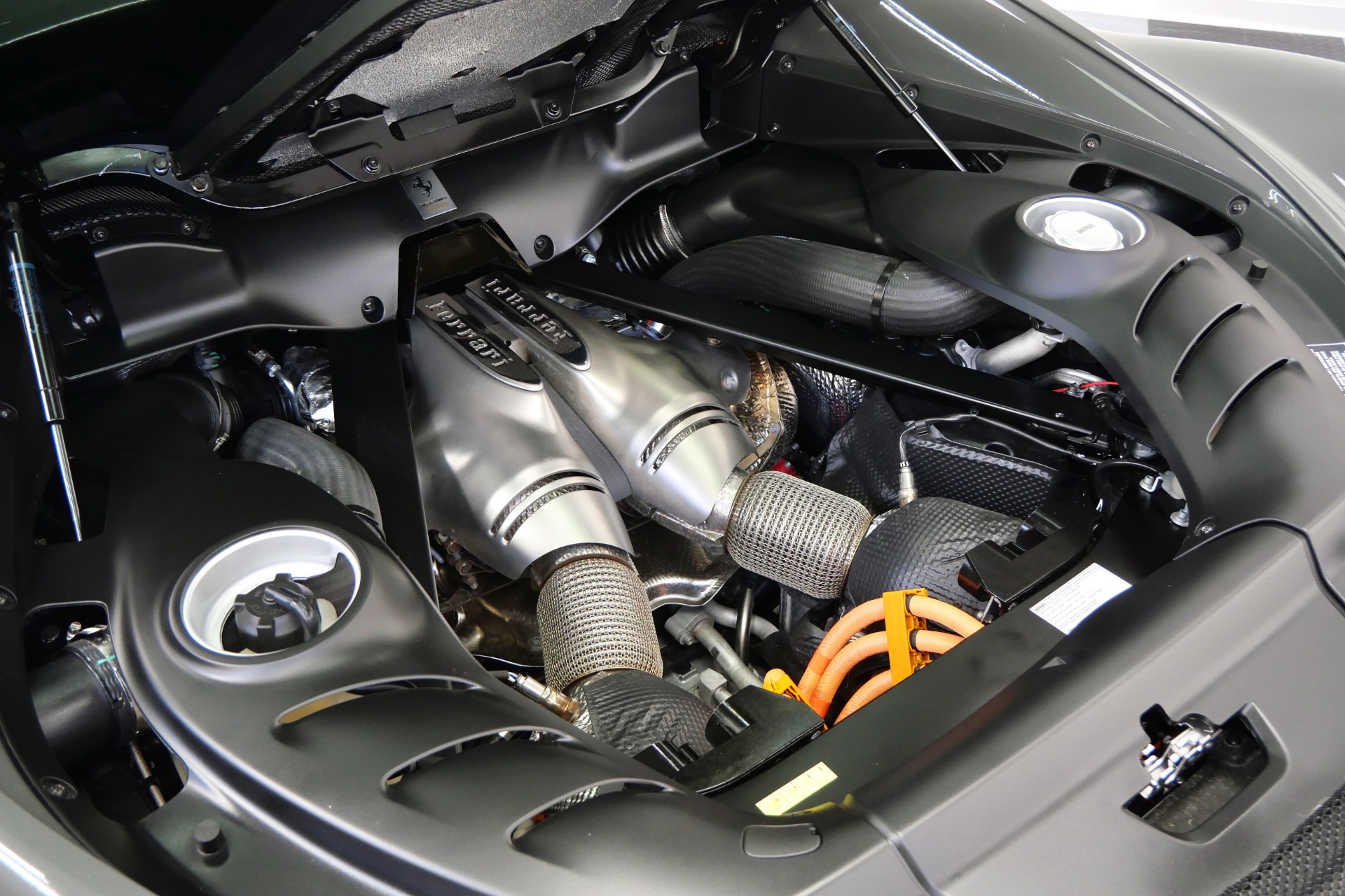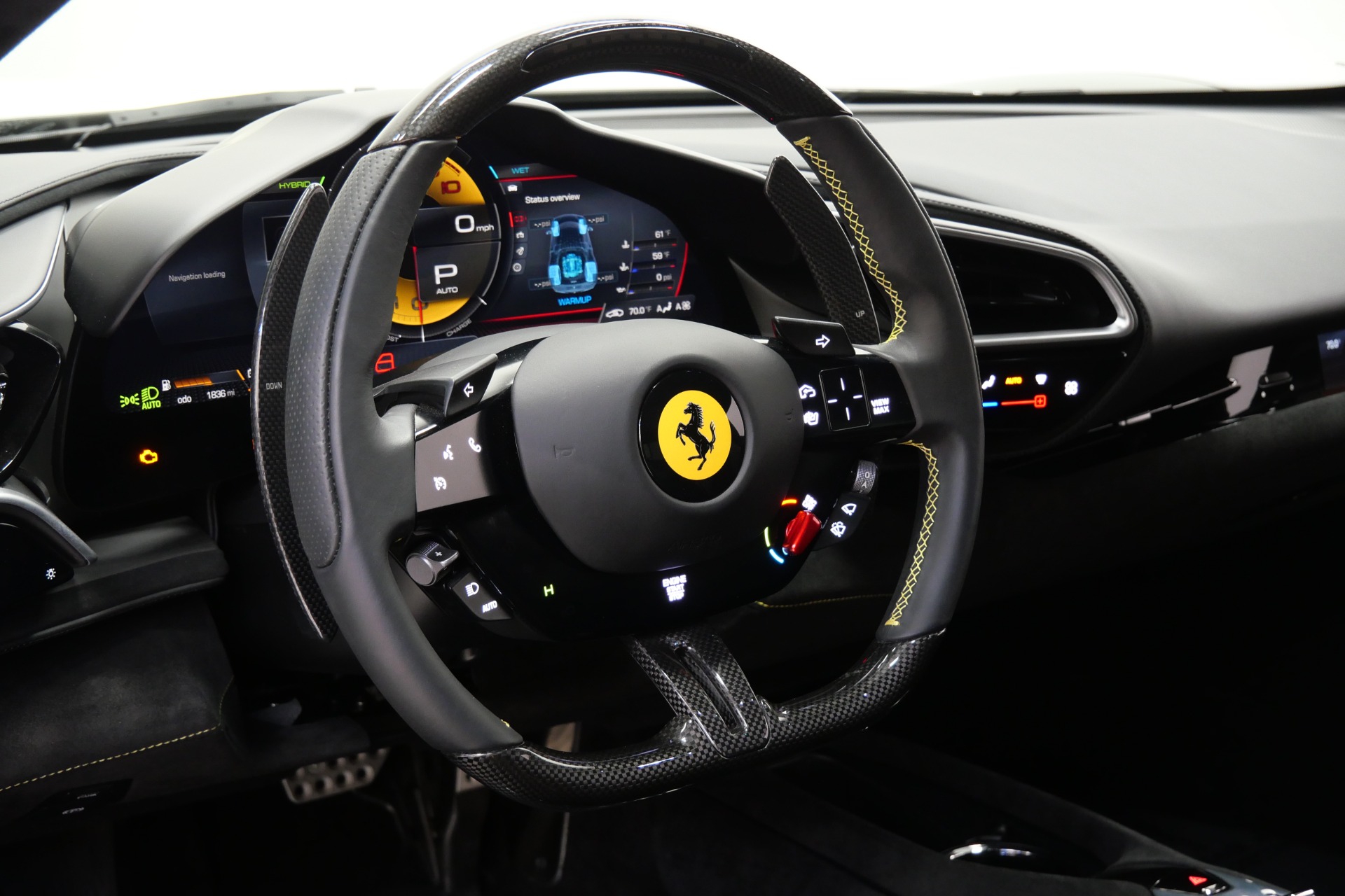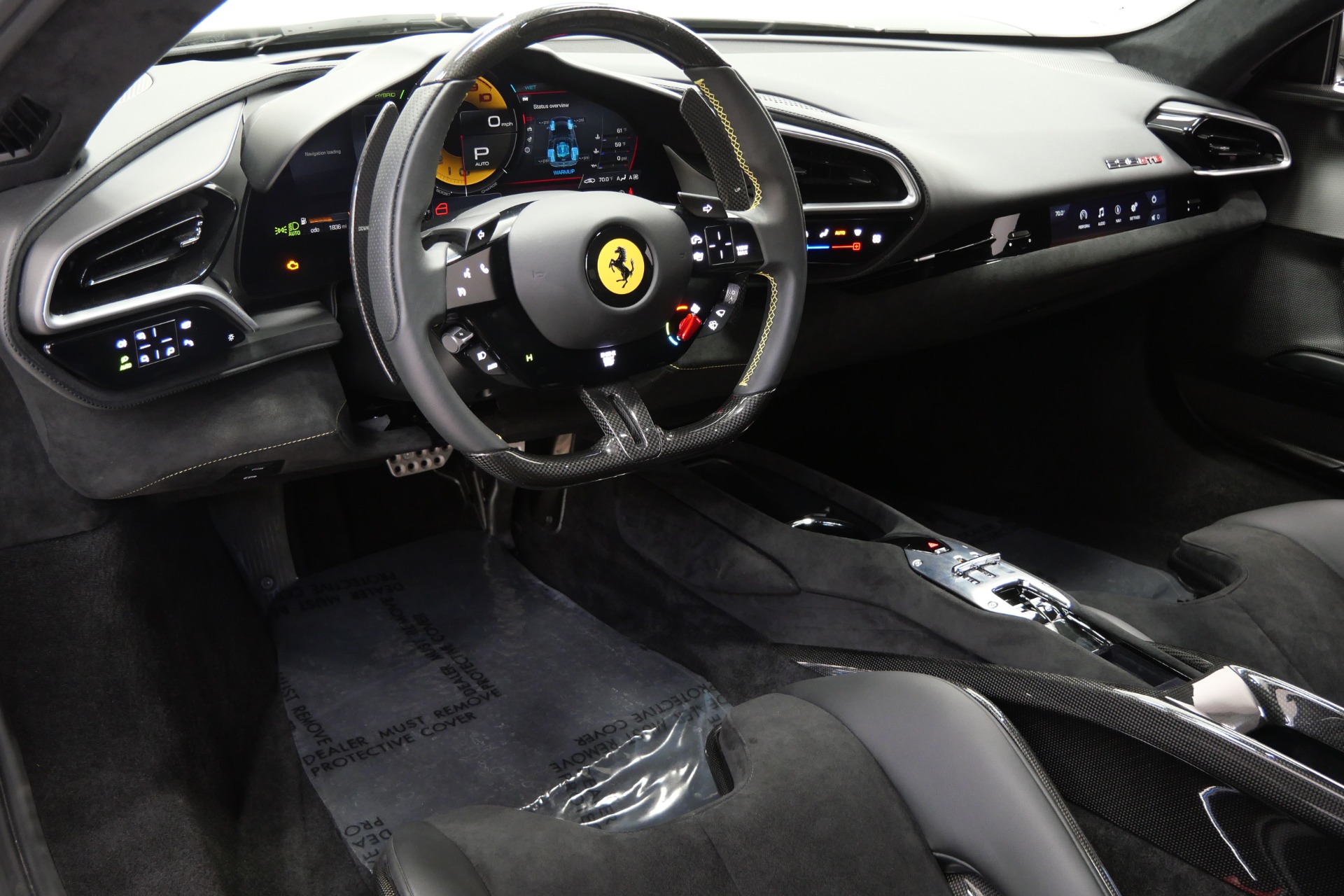 The heart of this thoroughbred beats with a revolutionary 3.0-liter twin-turbocharged V6, enhanced by plug-in hybrid technology to unleash a staggering 818 horsepower and 664 lb-ft of torque through an lightning-quick 8-speed dual-clutch transmission. Every detail screams racing pedigree: carbon fiber racing seats with Cavallino-embroidered headrests, striking Giallo Modena livery stripes, and track-inspired yellow brake calipers complement the matte black forged 20-inch wheels secured with titanium bolts.