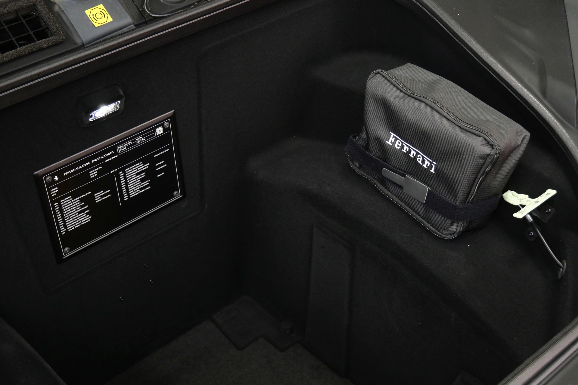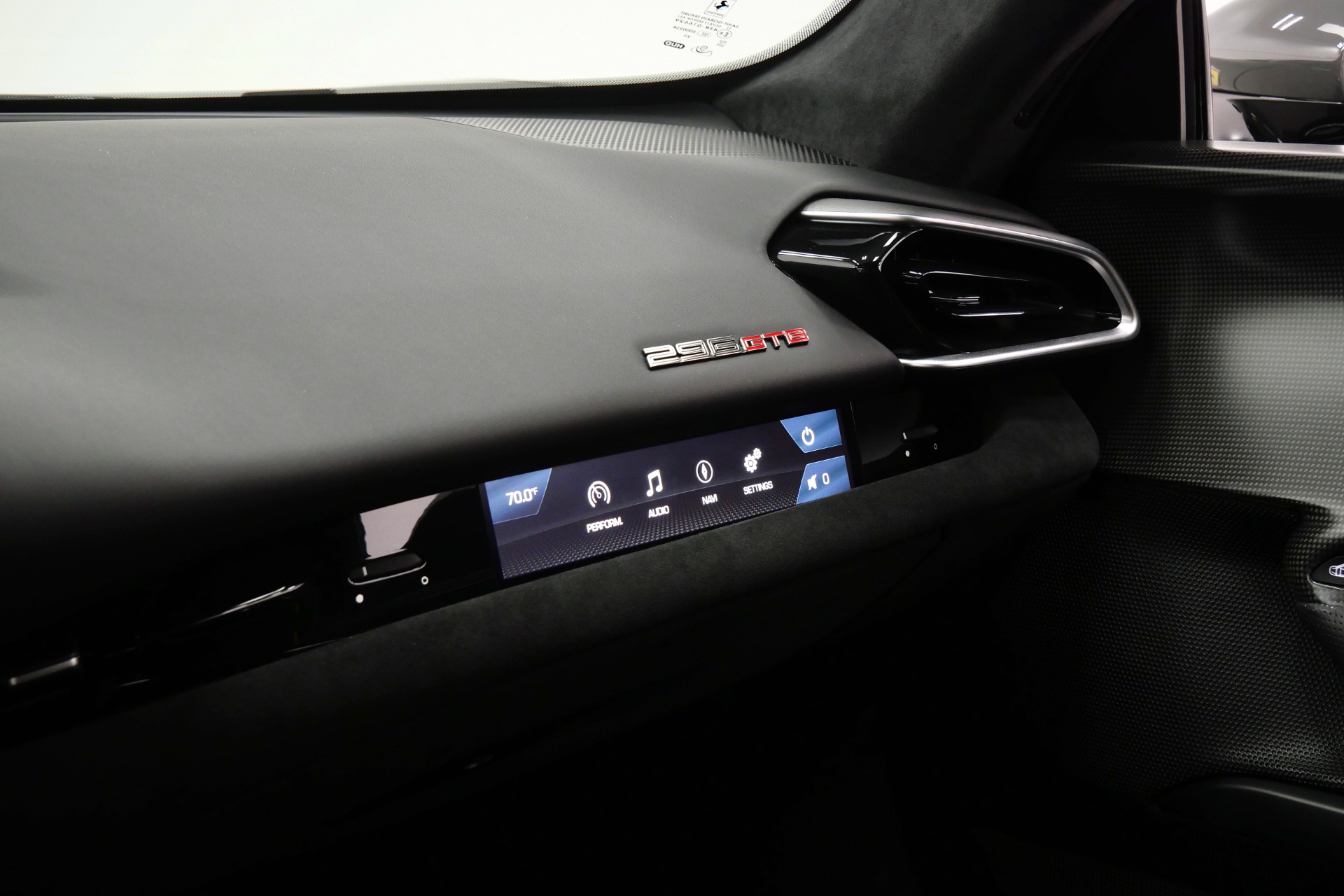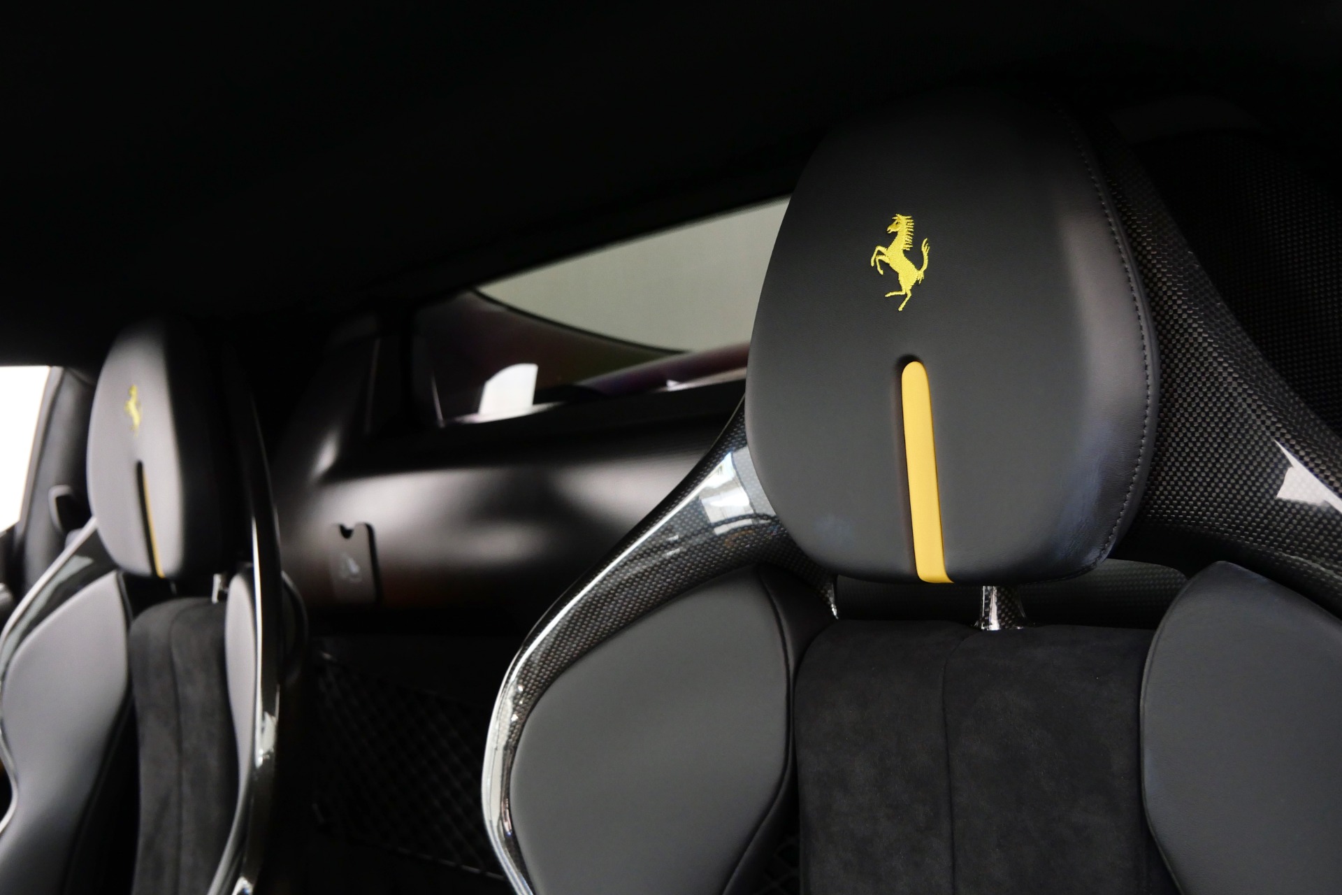 The cockpit pampers with Alcantara-trimmed surfaces, vibrant yellow stitching and seat belts, plus cutting-edge technology including Apple CarPlay, MyFerrari Connect, and wireless charging. The comprehensive Fiorano package, advanced driver assistance systems, and carbon fiber steering wheel with integrated LEDs complete this exceptional specification.