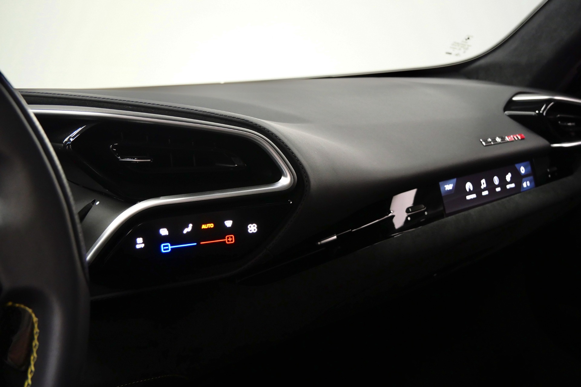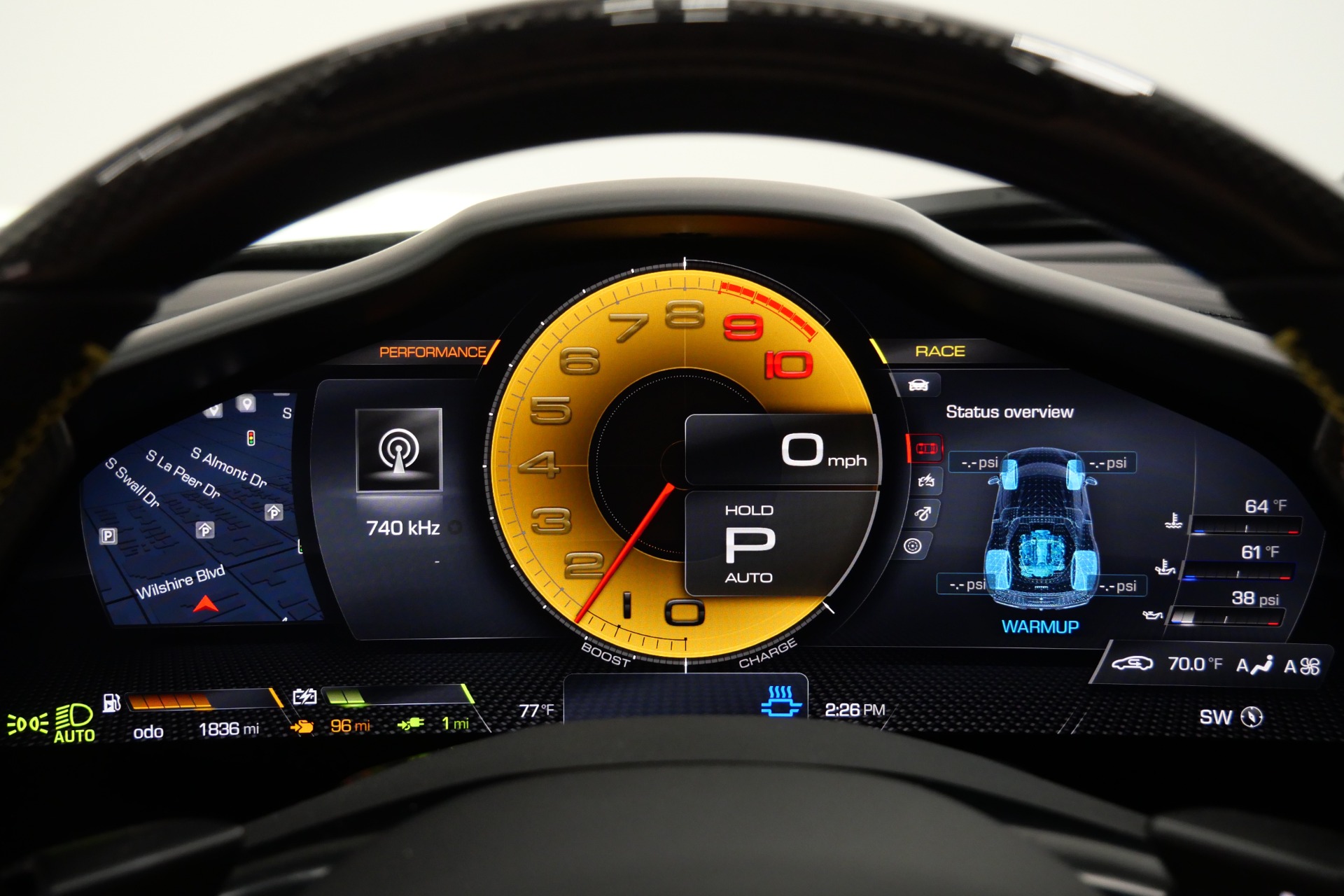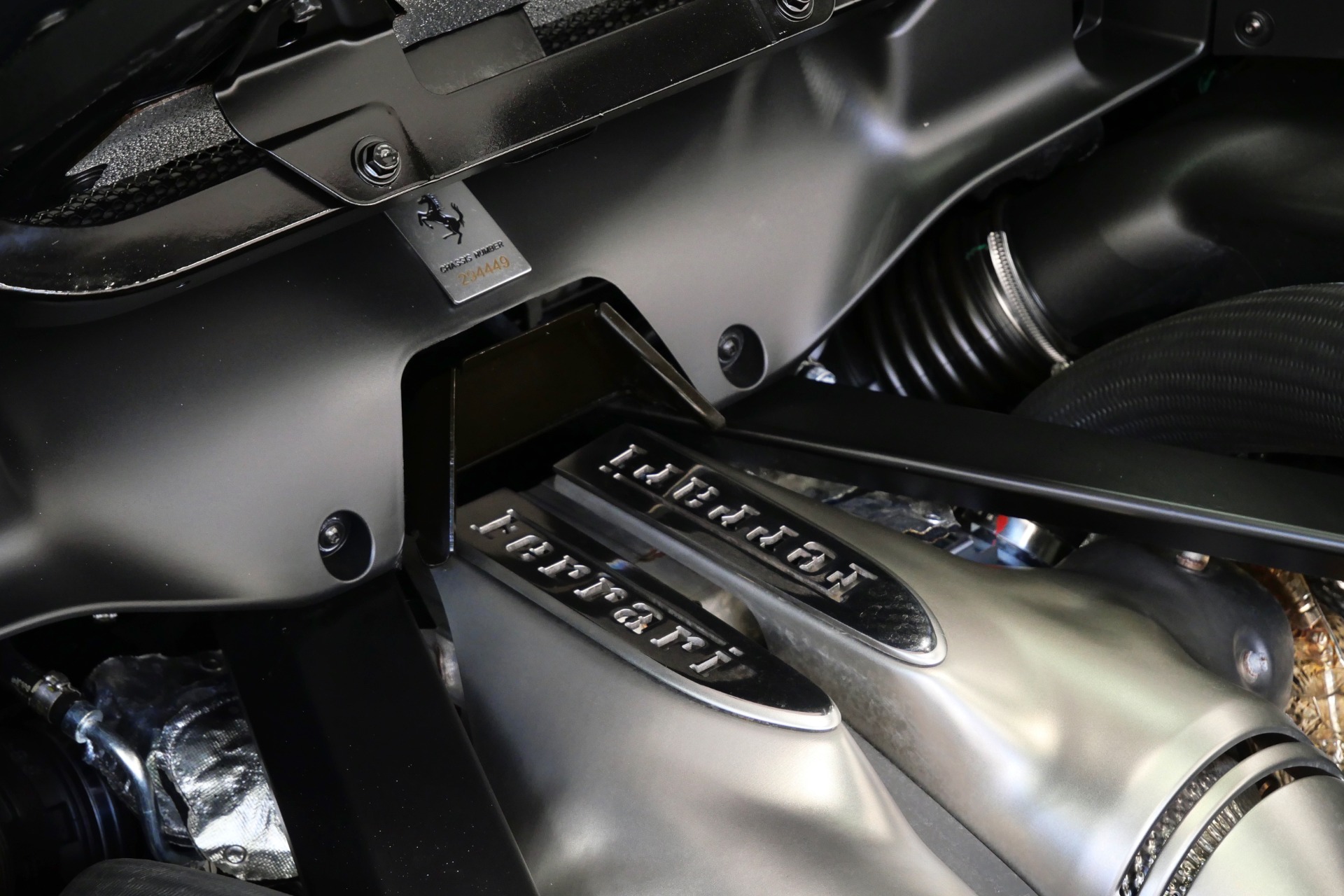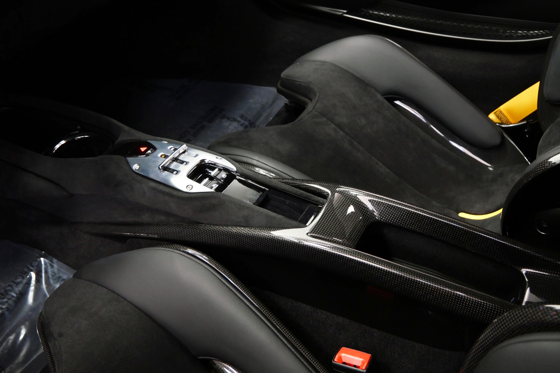 The cockpit pampers with Alcantara-trimmed surfaces, vibrant yellow stitching and seat belts, plus cutting-edge technology including Apple CarPlay, MyFerrari Connect, and wireless charging. The comprehensive Fiorano package, advanced driver assistance systems, and carbon fiber steering wheel with integrated LEDs complete this exceptional specification.