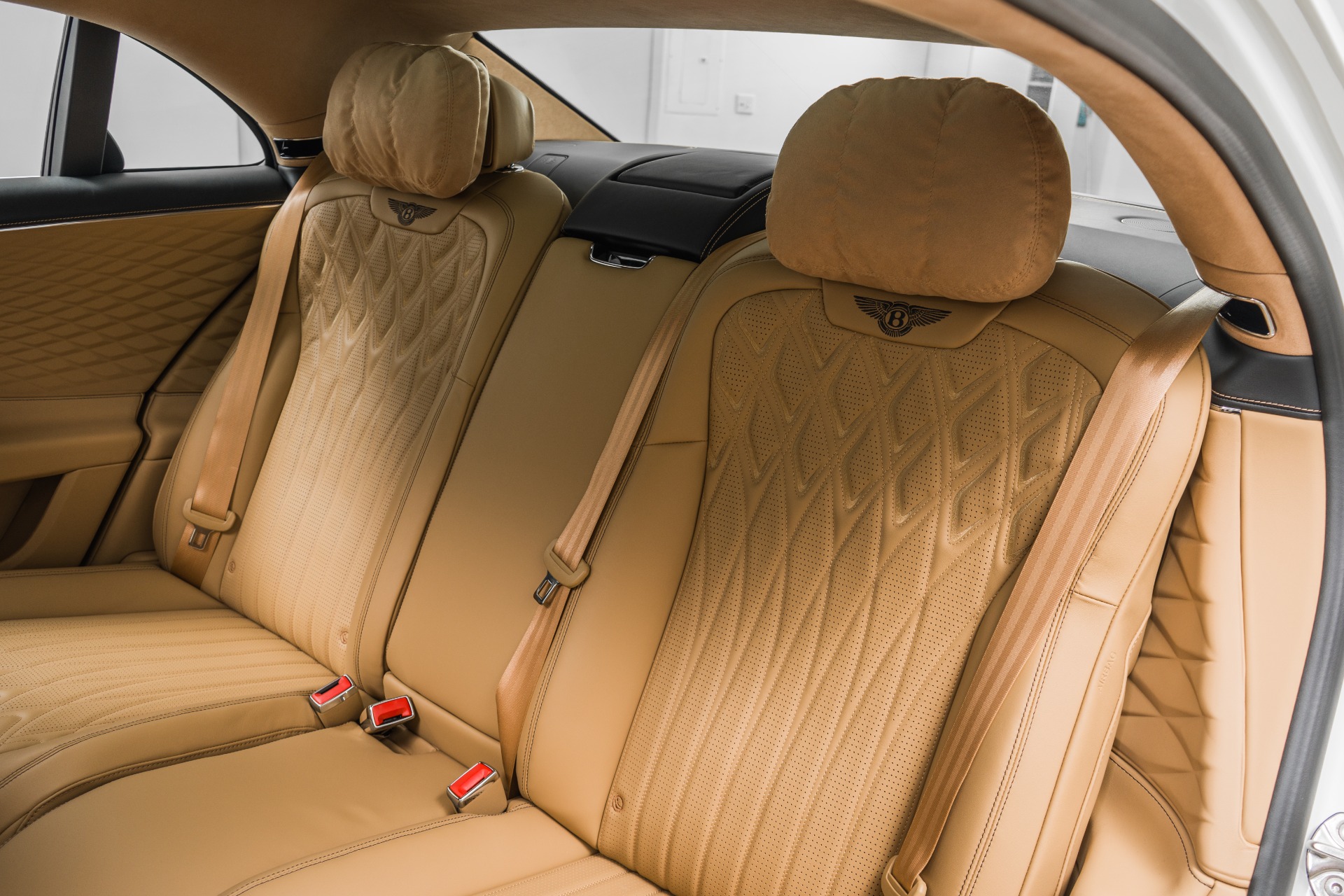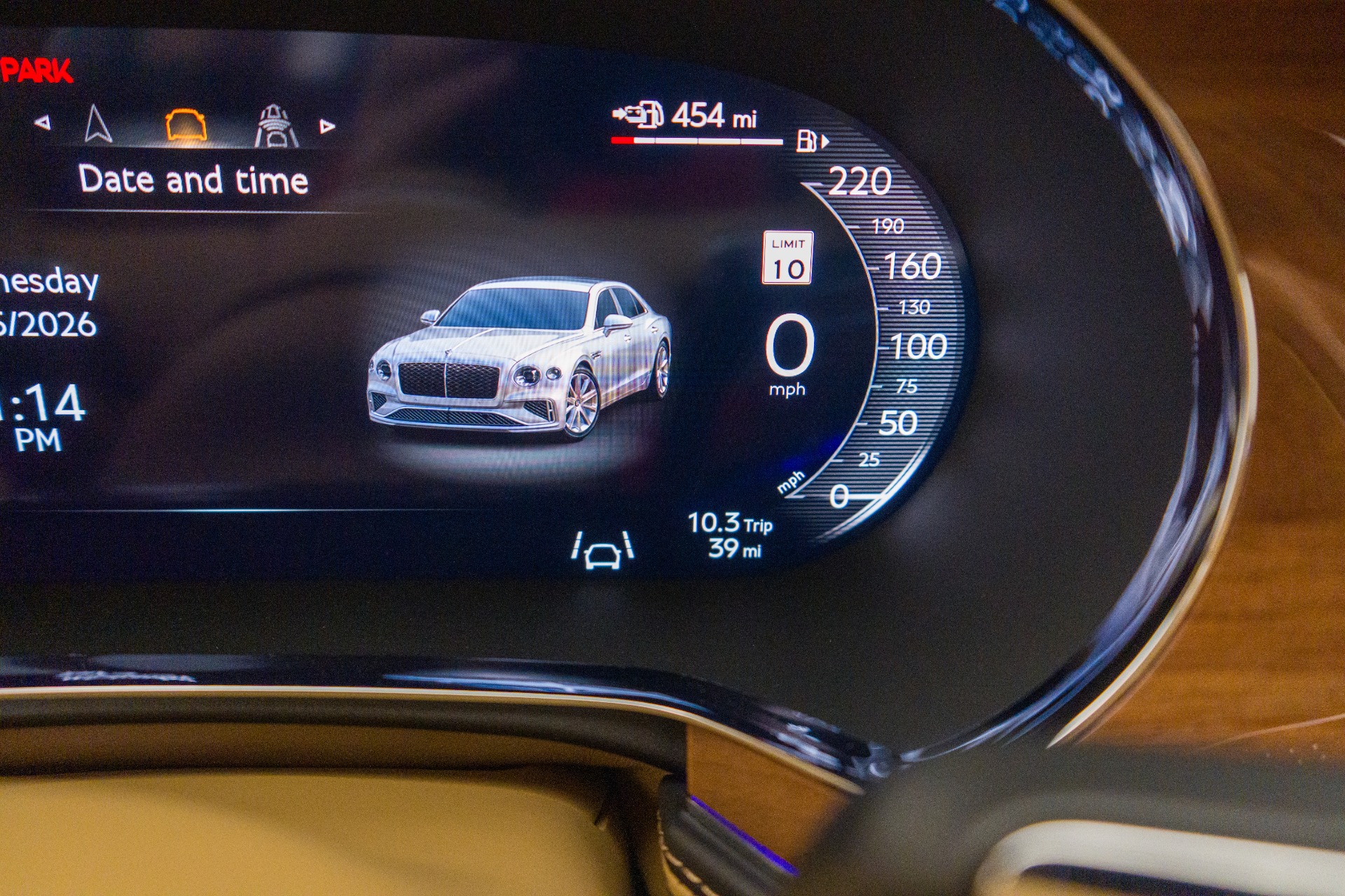 Exquisite details abound: the illuminated Flying B mascot commands attention, 22-inch machined-lip wheels provide commanding presence, and the bright lower bumper matrix grille adds contemporary sophistication. Dual panoramic sunroofs flood the cabin with natural light, complemented by contrast stitching and a duotone steering wheel that speaks to Bentley's bespoke heritage.